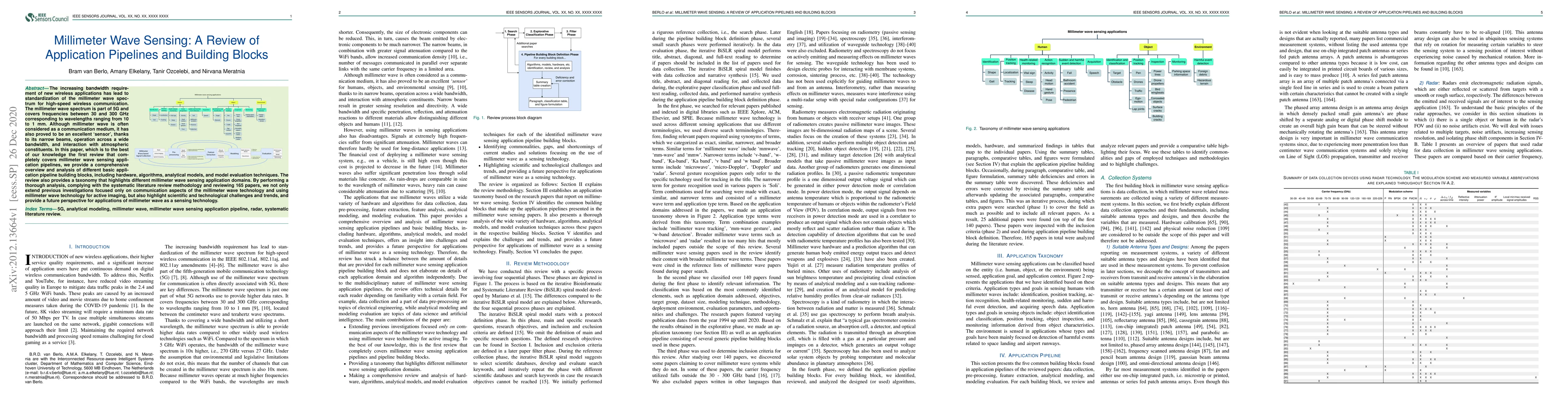 This paper reviews millimeter wave sensing applications, providing a comprehensive overview of application pipelines and building blocks, including hardware, algorithms, and analytical models. It highlights the scientific and technological challenges, trends, and future perspectives for millimeter wave sensing beyond communication.