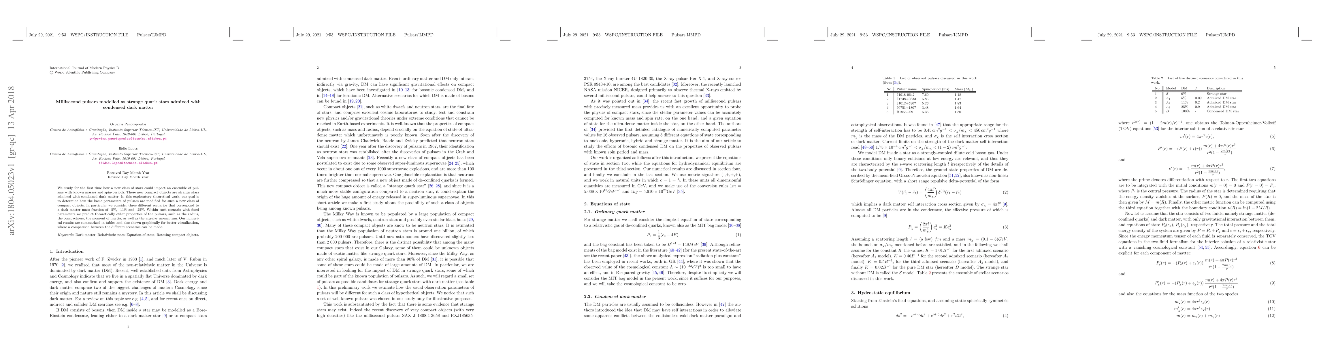 This paper explores how millisecond pulsars could be modeled as strange quark stars mixed with condensed dark matter, investigating three scenarios with varying dark matter fractions. The study predicts modifications in pulsar parameters like radius, compactness, moment of inertia, and angular momentum under these new theoretical models.