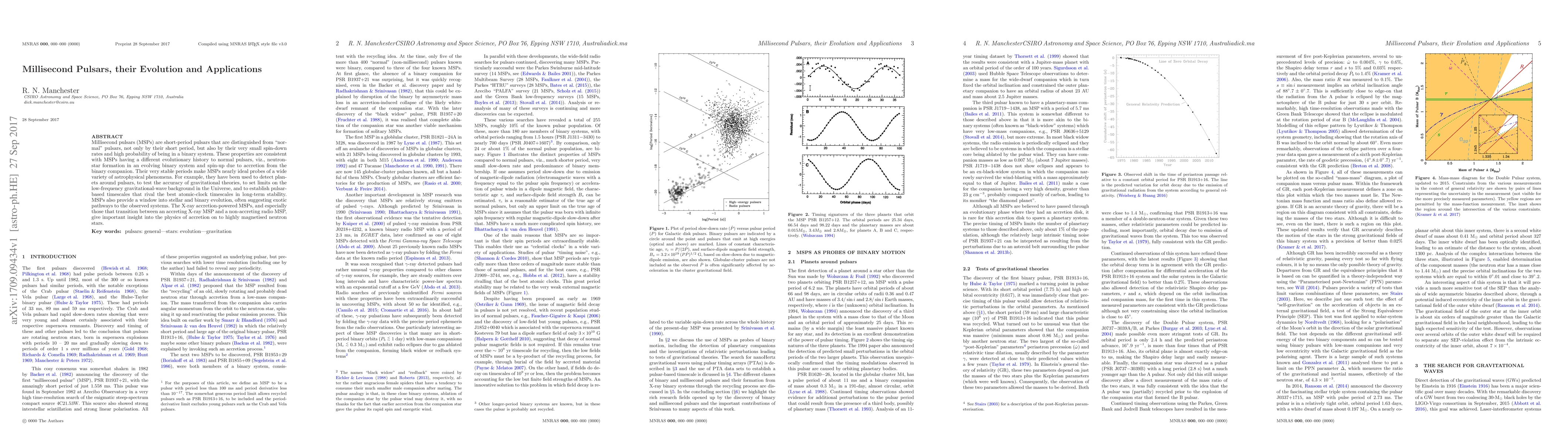 Millisecond pulsars (MSPs) are short-period pulsars that are distinguished from "normal" pulsars, not only by their short period, but also by their very small spin-down rates and high probability of being in a binary system. These properties are consistent with MSPs having a different evolutionary history to normal pulsars, viz., neutron-star formation in an evolving binary system and spin-up due to accretion from the binary companion. Their very stable periods make MSPs nearly ideal probes of a wide variety of astrophysical phenomena. For example, they have been used to detect planets around pulsars, to test the accuracy of gravitational theories, to set limits on the low-frequency gravitational-wave background in the Universe, and to establish pulsar-based timescales that rival the best atomic-clock timescales in long-term stability. MSPs also provide a window into stellar and binary evolution, often suggesting exotic pathways to the observed systems. The X-ray accretion-powered MSPs, and especially those that transition between an accreting X-ray MSP and a non-accreting radio MSP, give important insight into the physics of accretion on to highly magnetised neutron stars.