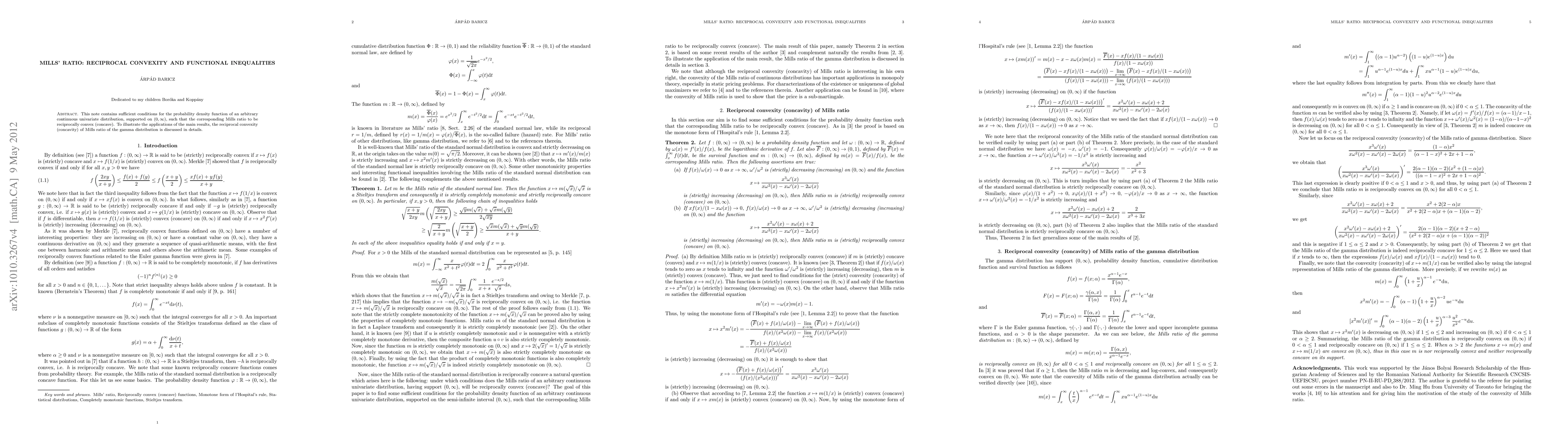 This note contains sufficient conditions for the probability density function of an arbitrary continuous univariate distribution, supported on $(0,\infty),$ such that the corresponding Mills ratio to be reciprocally convex (concave). To illustrate the applications of the main results, the reciprocal convexity (concavity) of Mills ratio of the gamma distribution is discussed in details.