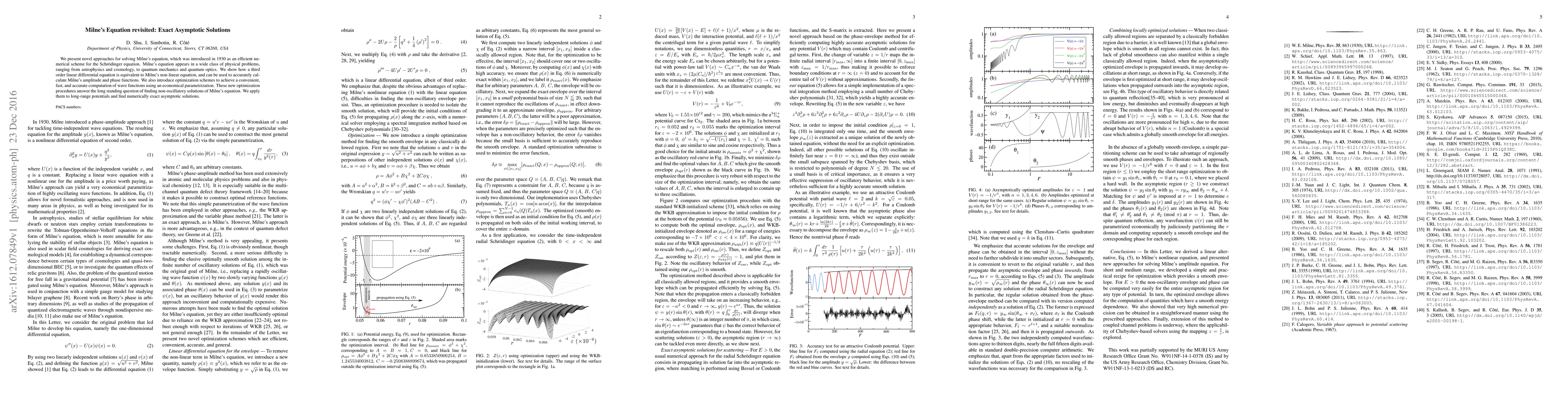 We present novel approaches for solving Milne's equation, which was introduced in 1930 as an efficient numerical scheme for the Schr\"odinger equation. Milne's equation appears in a wide class of physical problems, ranging from astrophysics and cosmology, to quantum mechanics and quantum optics. We show how a third order linear differential equation is equivalent to Milne's non-linear equation, and can be used to accurately calculate Milne's amplitude and phase functions. We also introduce optimization schemes to achieve a convenient, fast, and accurate computation of wave functions using an economical parametrization. These new optimization procedures answer the long standing question of finding non-oscillatory solutions of Milne's equation. We apply them to long-range potentials and find numerically exact asymptotic solutions.