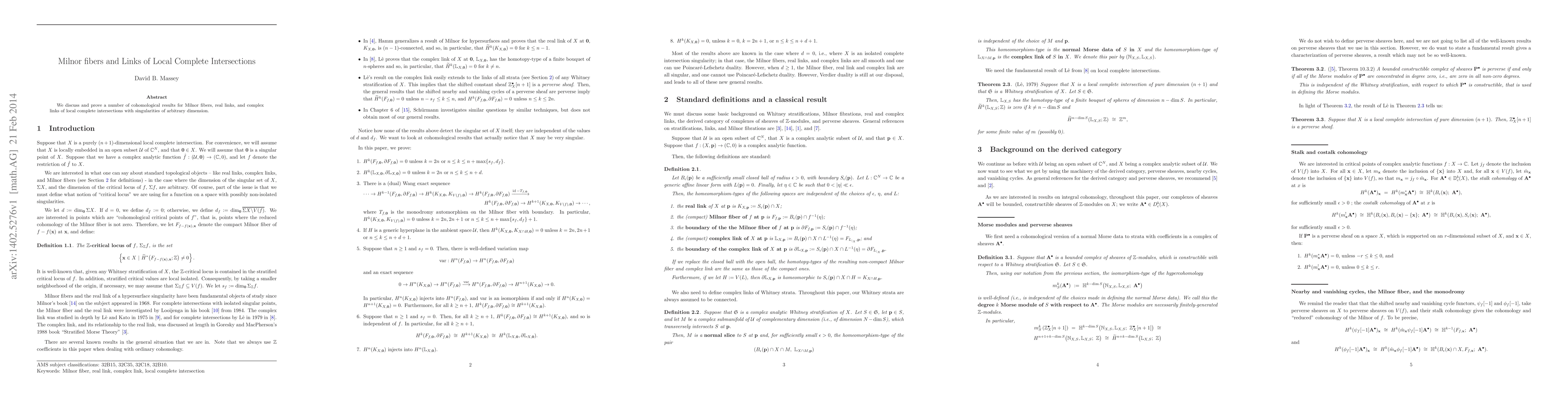 We discuss and prove a number of cohomological results for Milnor fibers, real links, and complex links of local complete intersections with singularities of arbitrary dimension.