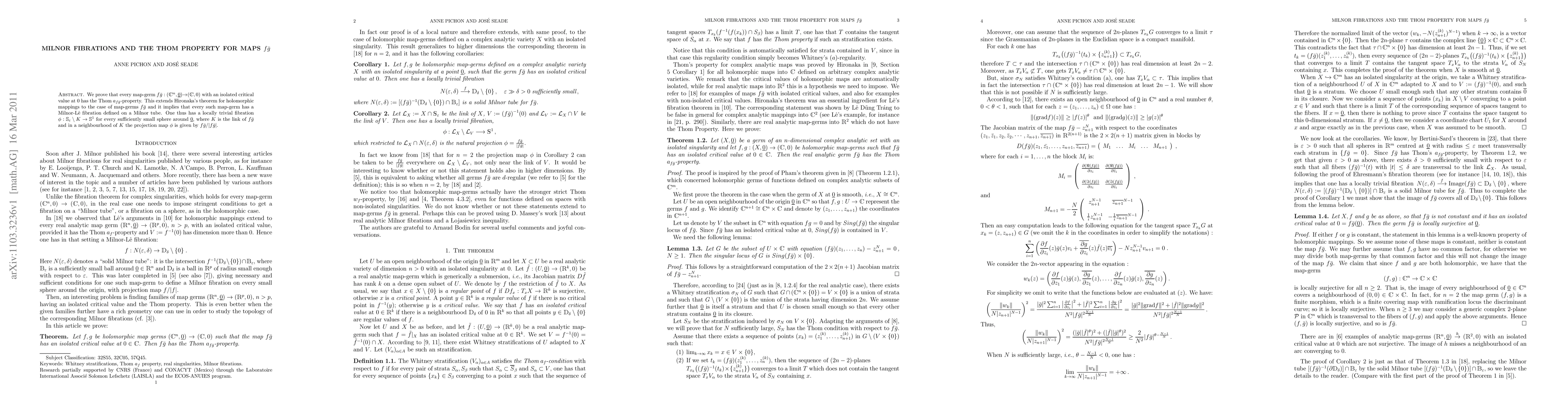 This paper proves that map-germs ${f \bar g}: (\C^n,0) {\to}(\C,0)$ with an isolated critical value at 0 possess the Thom $a_{f \bar g}$-property, extending Hironaka's theorem to this context. It also implies the existence of a Milnor-Lê fibration on a Milnor tube around the origin.