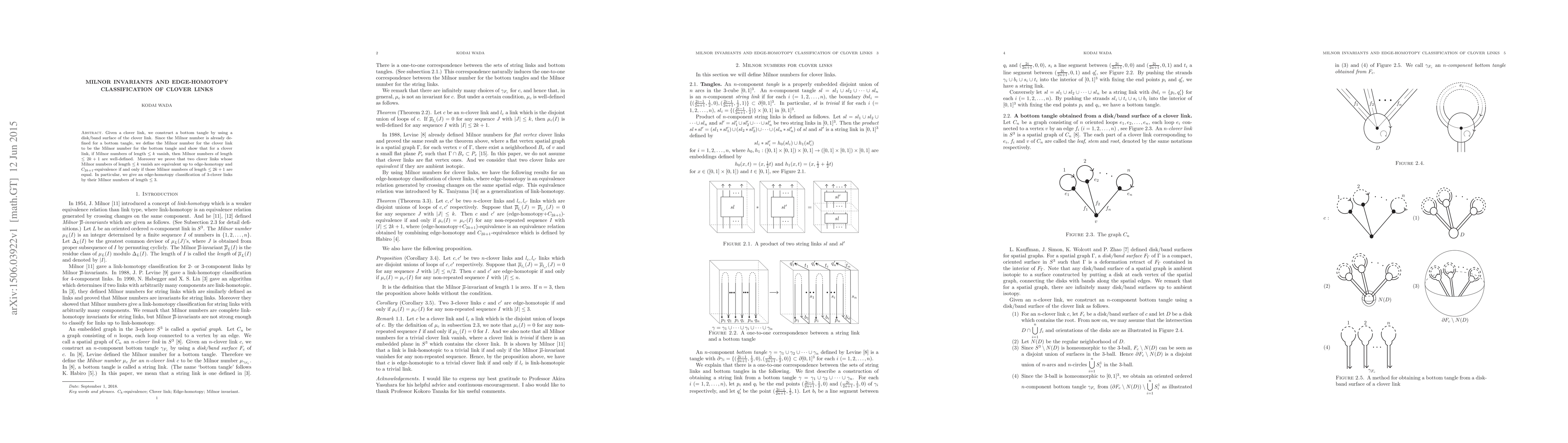 This paper introduces the Milnor number for clover links via a constructed bottom tangle, proving that vanishing Milnor numbers of length k imply well-definedness of Milnor numbers up to length 2k+1. It also establishes an edge-homotopy classification for 3-clover links based on their Milnor numbers up to length 3.
