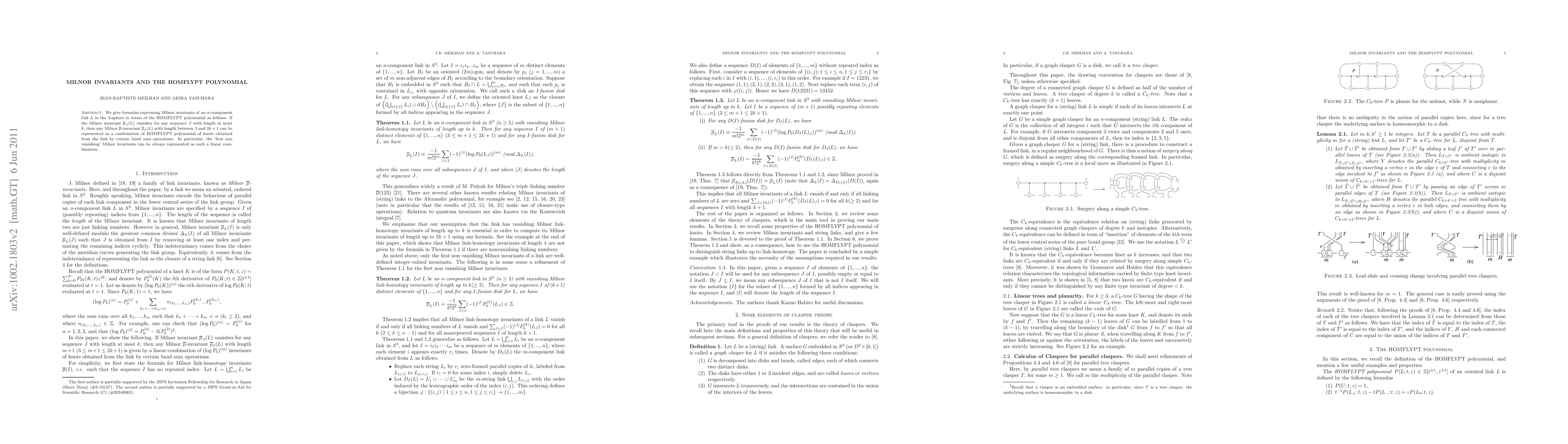 Summary: The paper provides a relationship between Milnor invariants of n-component links in the 3-sphere and the HOMFLYPT polynomial, showing that vanishing Milnor invariants for certain sequences imply Milnor invariants of specific lengths can be expressed as linear combinations of HOMFLYPT polynomials of derived knots via band sum operations. The first non-vanishing Milnor invariants follow this representation.