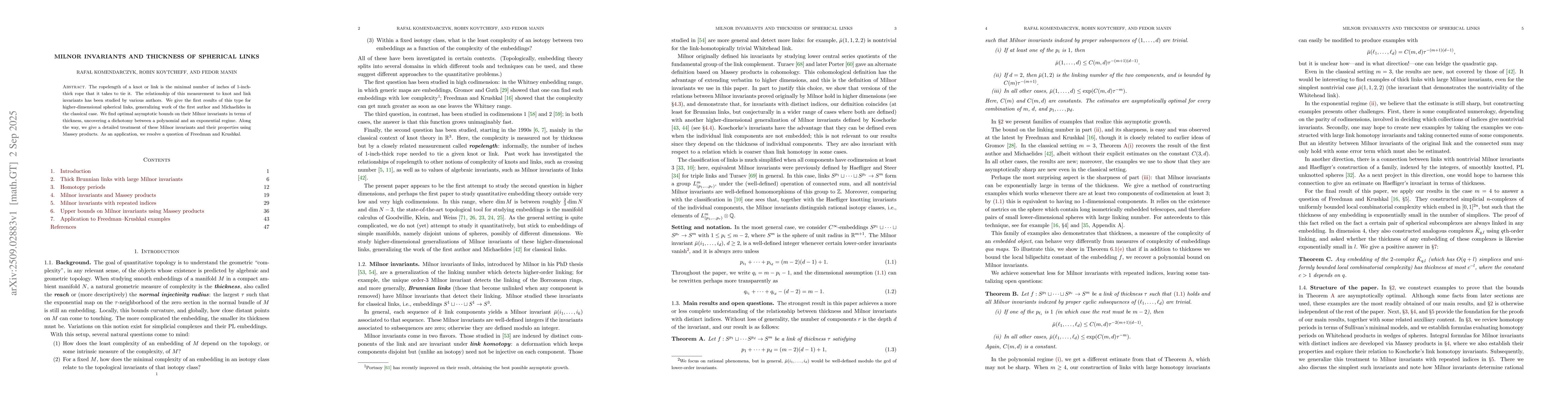 The ropelength of a knot or link is the minimal number of inches of 1-inch-thick rope that it takes to tie it. The relationship of this measurement to knot and link invariants has been studied by various authors. We give the first results of this type for higher-dimensional spherical links, generalizing work of the first author and Michaelides in the classical case. We find optimal asymptotic bounds on their Milnor invariants in terms of thickness, uncovering a dichotomy between a polynomial and an exponential regime. Along the way, we give a detailed treatment of these Milnor invariants and their properties using Massey products. As an application, we resolve a question of Freedman and Krushkal.