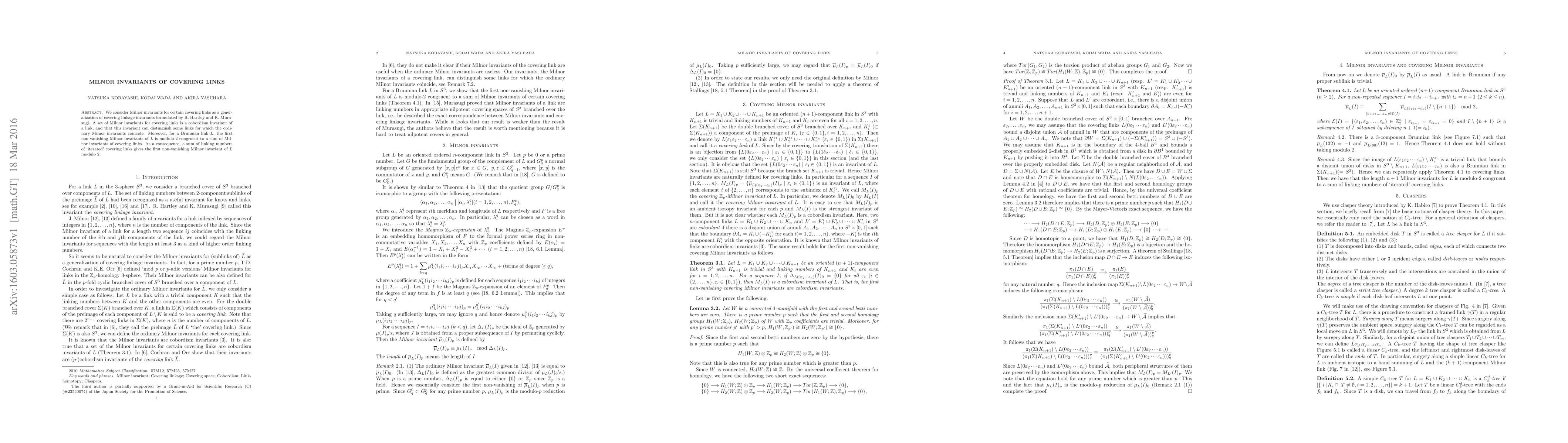 This research paper explores Milnor invariants for covering links, generalizing previous linkage invariants. It demonstrates that these new invariants can distinguish links where traditional Milnor invariants are identical and reveals a relationship between Brunnian links and iterated covering links through modulo-2 congruence of their non-vanishing Milnor invariants.