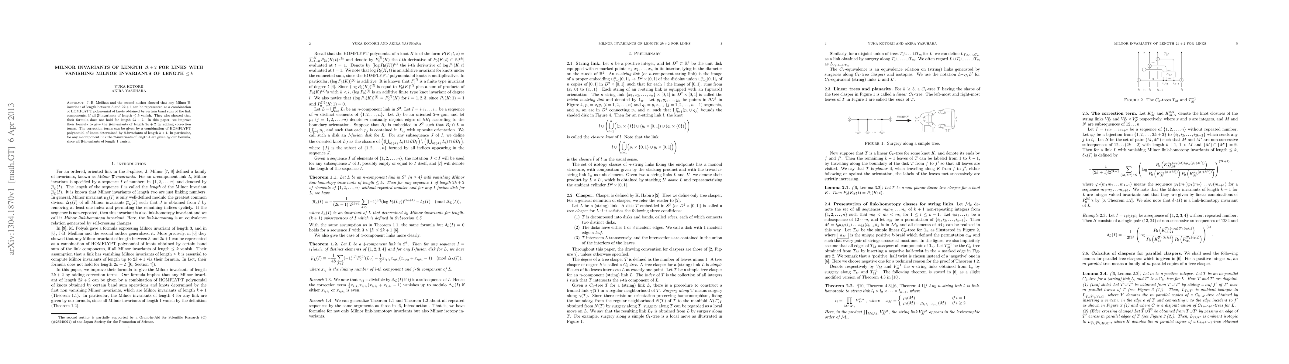 This paper refines a formula for Milnor invariants of length $2k+2$ for links where all lower-length Milnor invariants vanish, introducing correction terms based on HOMFLYPT polynomials of knots derived from length $k+1$ invariants. Specifically, it provides a formula for 4-component link $\bar{\mu}$-invariants of length 4 when lower-length invariants vanish.