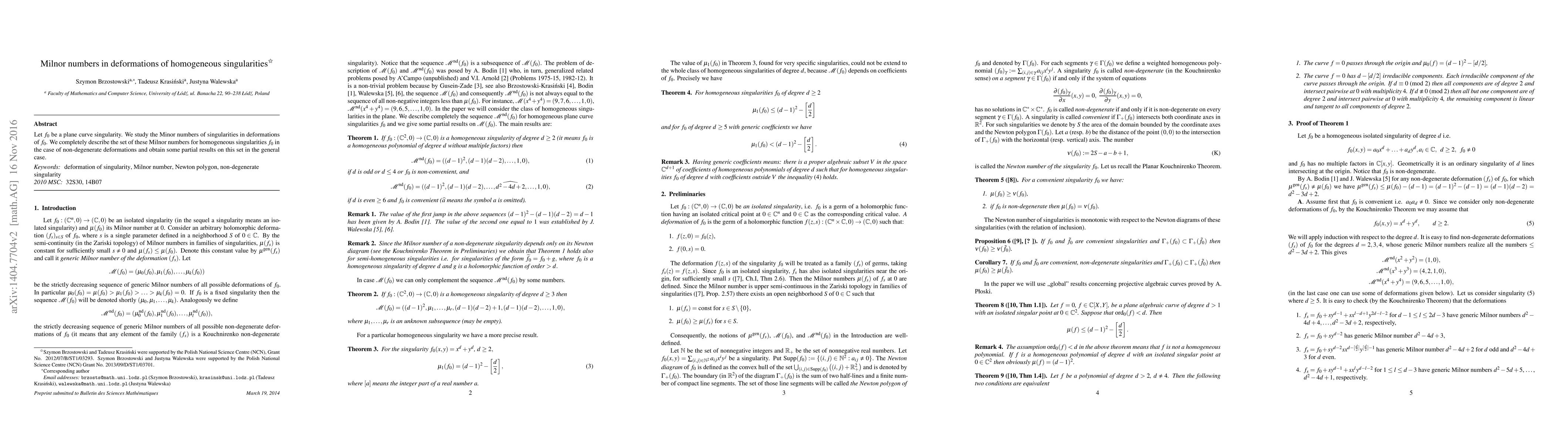This paper investigates the Milnor numbers of singularities in deformations of a given plane curve singularity f_0, focusing on homogeneous singularities. It provides a complete description of the Milnor numbers for non-degenerate deformations and offers partial results for general cases.