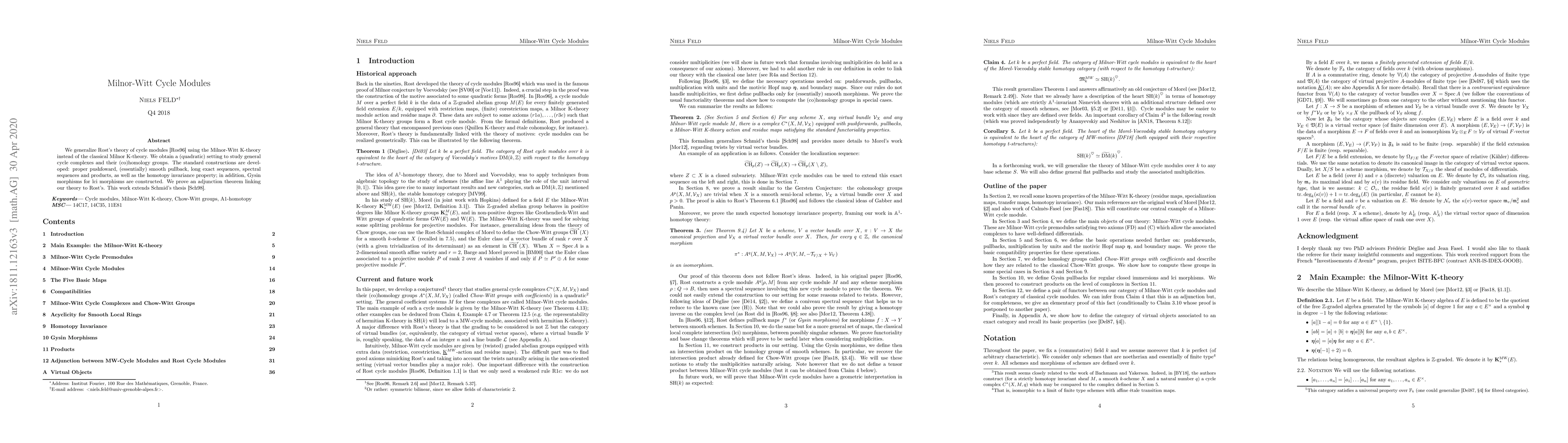This paper generalizes Rost's cycle module theory by employing Milnor-Witt K-theory, establishing a framework for studying cycle complexes and their cohomology, including constructions like pullback, pushforward, spectral sequences, and Gysin morphisms, while proving an adjunction theorem connecting it to Rost's original theory.