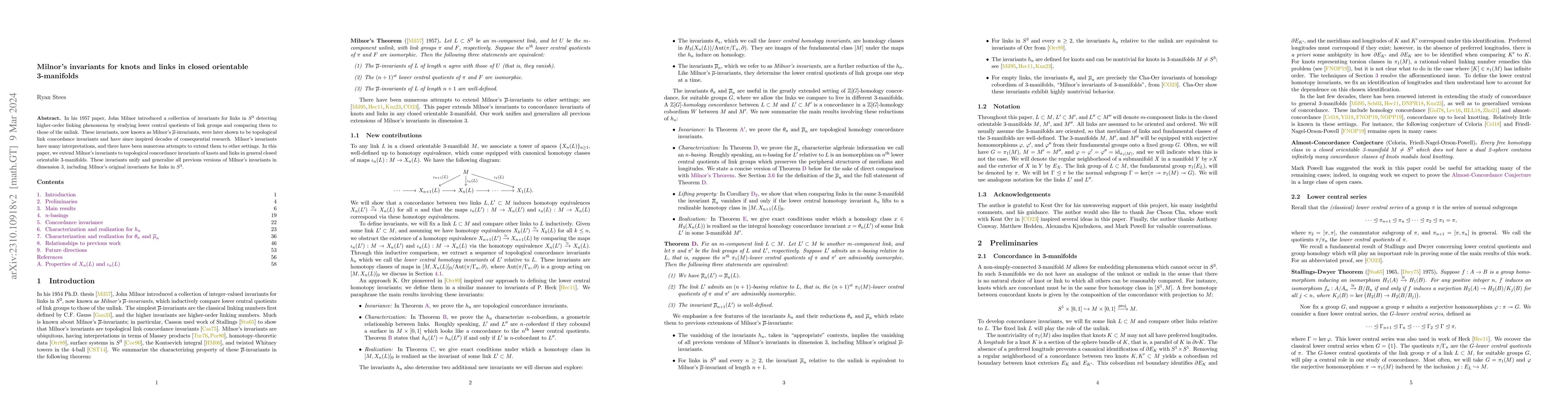 In his 1957 paper, John Milnor introduced a collection of invariants for links in $S^3$ detecting higher-order linking phenomena by studying lower central quotients of link groups and comparing them to those of the unlink. These invariants, now known as Milnor's $\overline{\mu}$-invariants, were later shown to be topological link concordance invariants and have since inspired decades of consequential research. Milnor's invariants have many interpretations, and there have been numerous attempts to extend them to other settings. In this paper, we extend Milnor's invariants to topological concordance invariants of knots and links in general closed orientable 3-manifolds. These invariants unify and generalize all previous versions of Milnor's invariants in dimension 3, including Milnor's original invariants for links in $S^3$.