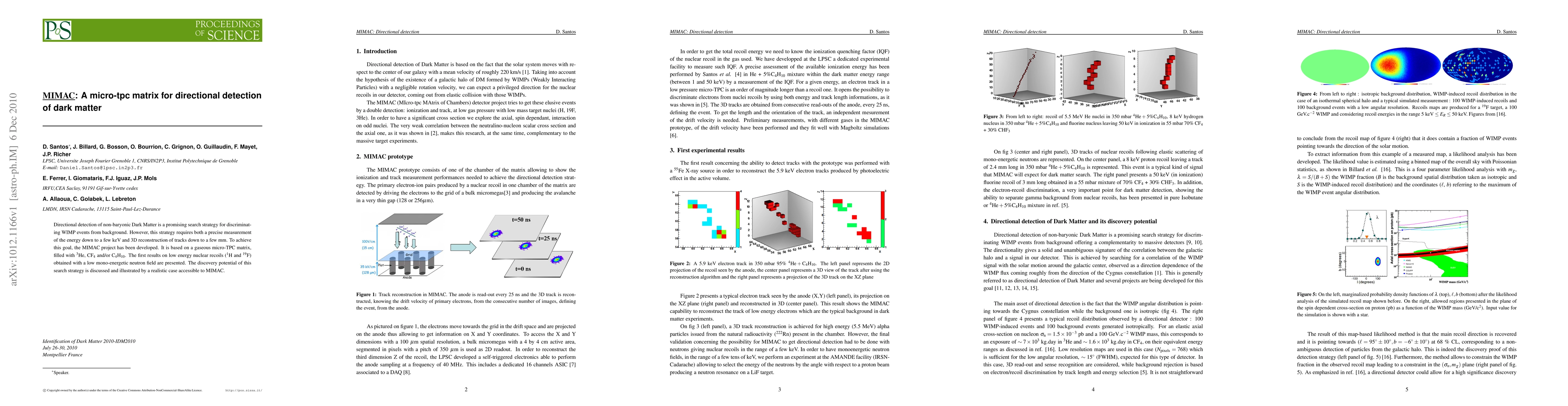 The MIMAC project employs a gaseous micro-TPC matrix to enable precise directional detection of non-baryonic Dark Matter, achieving energy measurements down to keV and 3D track reconstruction. Initial results from low-energy nuclear recoils demonstrate the potential of this approach for distinguishing WIMP events from background noise.