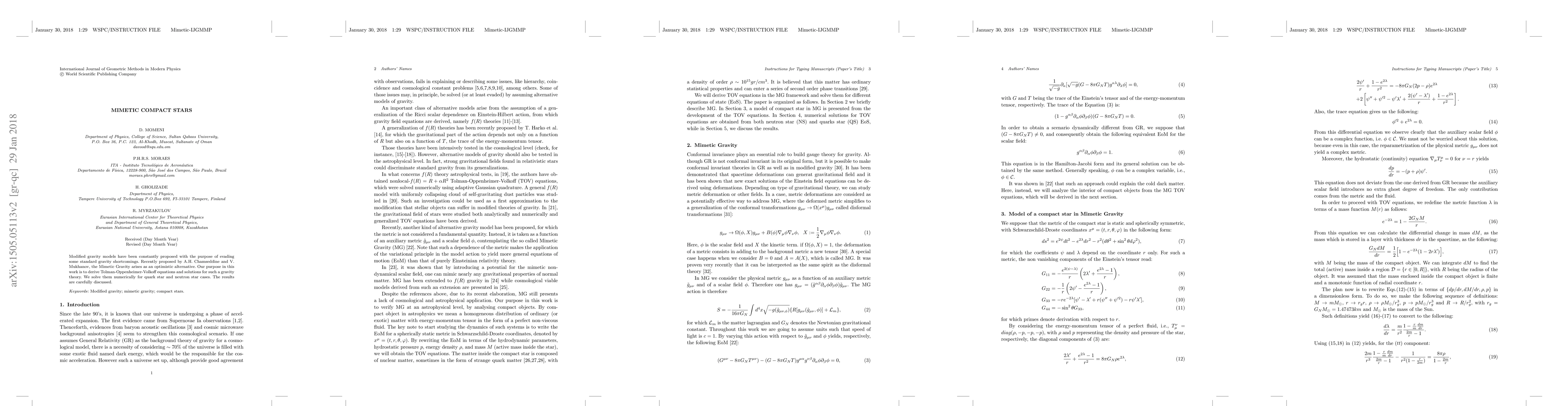 This paper explores Mimetic Gravity, a modified gravity model proposed to address standard gravity limitations, and derives Tolman-Oppenheimer-Volkoff equations for compact stars, solving them numerically for quark star and neutron star scenarios to discuss the implications.