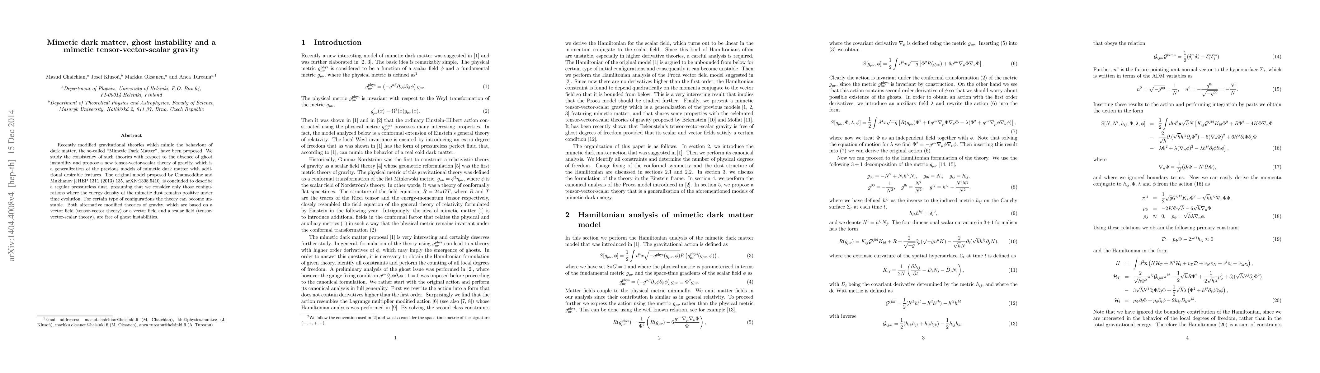 This paper investigates the consistency of mimetic dark matter theories, proposing a new tensor-vector-scalar gravity model that avoids ghost instability. It concludes that the original mimetic dark matter model can be unstable under certain configurations but the proposed tensor-vector-scalar theory remains stable.