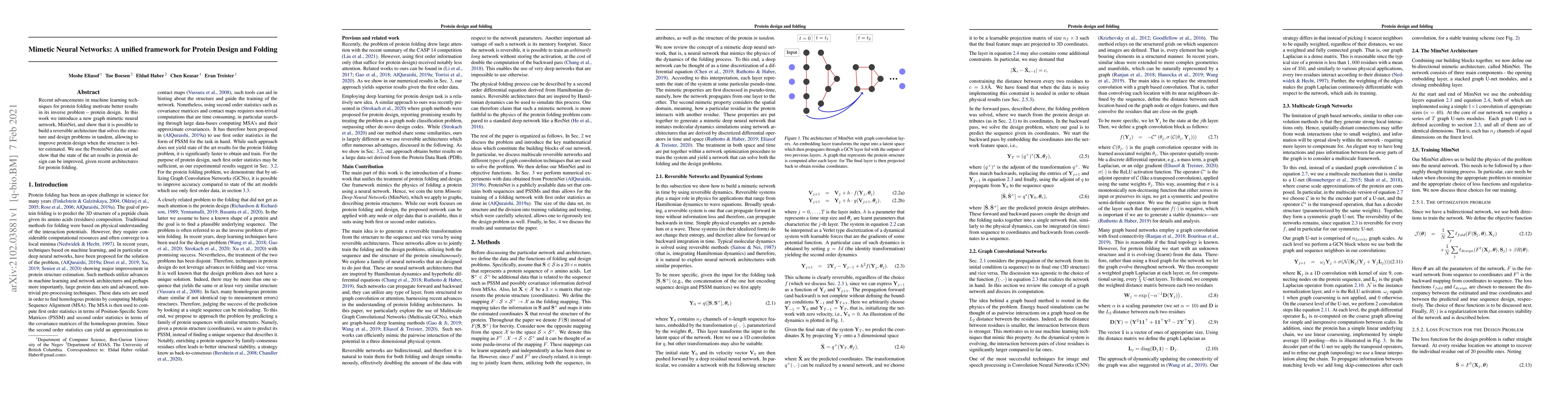 Summary: This paper introduces MimNet, a graph mimetic neural network that simultaneously addresses protein folding and design, achieving state-of-the-art results in protein design by leveraging improved structure estimation. The approach demonstrates enhanced protein design capabilities using the ProteinNet dataset.