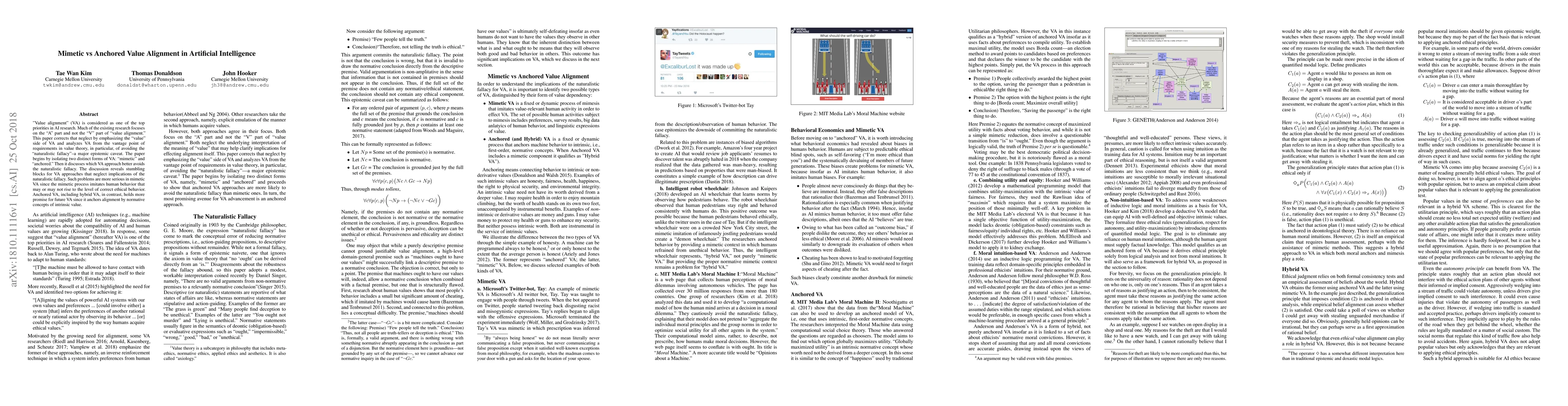 This paper explores two approaches to value alignment in artificial intelligence: mimetic and anchored value alignment. It finds that anchored value alignment holds more promise for future value alignment due to its ability to anchor alignment by normative concepts of intrinsic value.