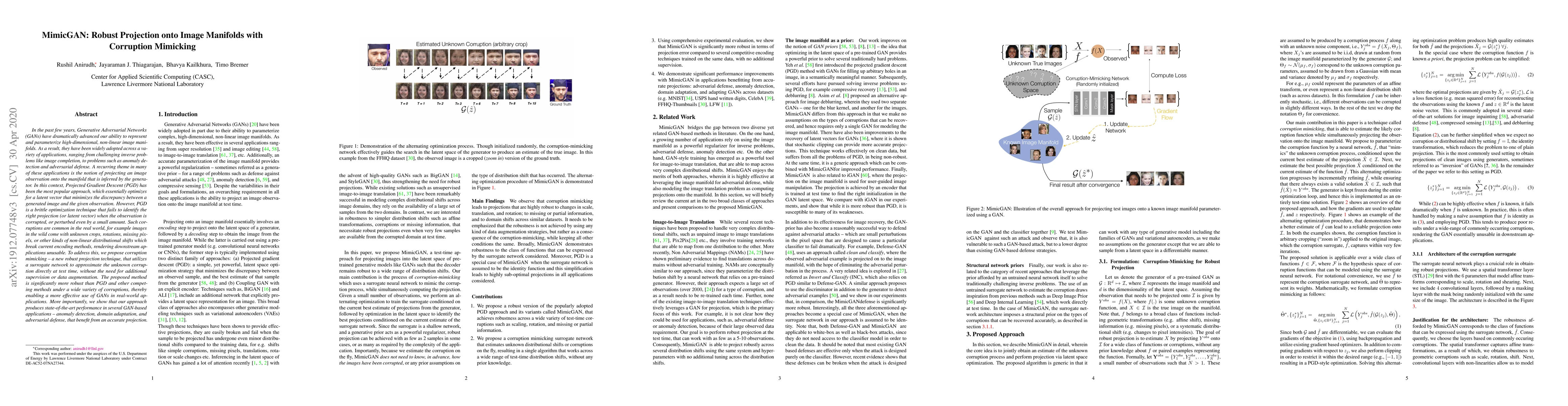 A new GAN-based method called MimicGAN improves image projection robustness by approximating corruption at test time, achieving state-of-the-art performance in applications like anomaly detection and adversarial defense.