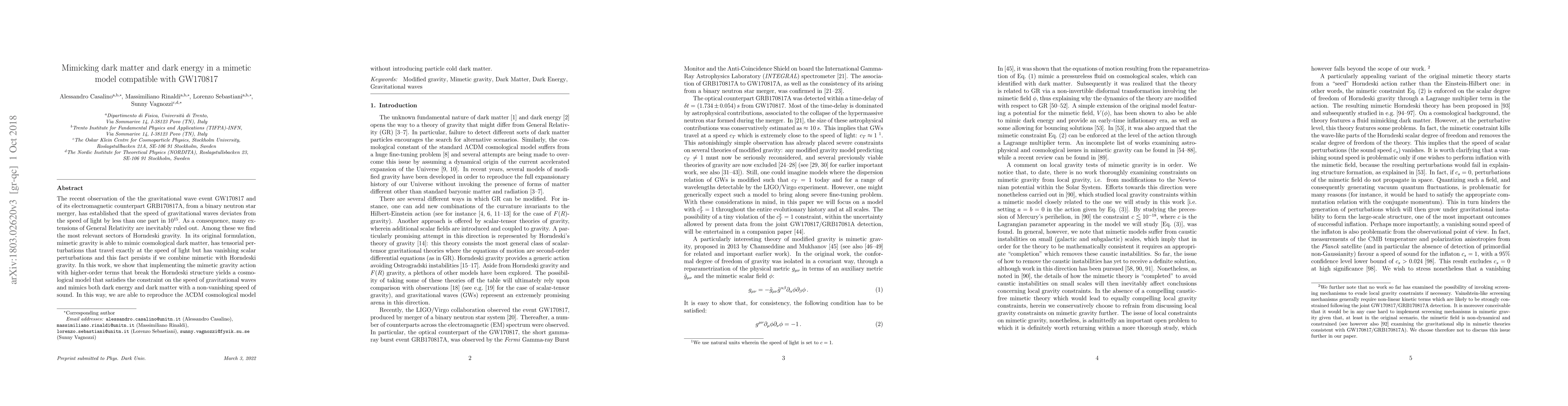 The recent observation of the the gravitational wave event GW170817 and of its electromagnetic counterpart GRB170817A, from a binary neutron star merger, has established that the speed of gravitational waves deviates from the speed of light by less than one part in $10^{15}$. As a consequence, many extensions of General Relativity are inevitably ruled out. Among these we find the most relevant sectors of Horndeski gravity. In its original formulation, mimetic gravity is able to mimic cosmological dark matter, has tensorial perturbations that travel exactly at the speed of light but has vanishing scalar perturbations and this fact persists if we combine mimetic with Horndeski gravity. In this work, we show that implementing the mimetic gravity action with higher-order terms that break the Horndeski structure yields a cosmological model that satisfies the constraint on the speed of gravitational waves and mimics both dark energy and dark matter with a non-vanishing speed of sound. In this way, we are able to reproduce the $\Lambda$CDM cosmological model without introducing particle cold dark matter.
