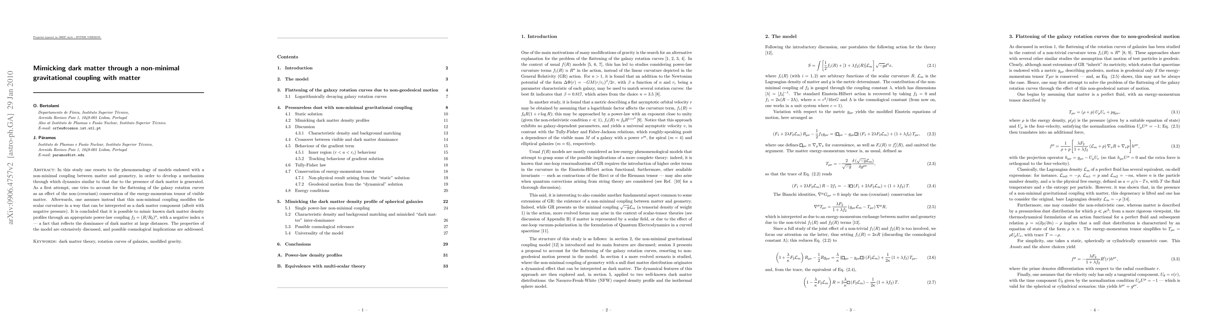 This paper explores a non-minimal gravitational coupling between matter and geometry to mimic dark matter effects, specifically addressing the flattening of galaxy rotation curves. It proposes a power-law coupling model that can replicate dark matter density profiles, suggesting potential cosmological implications.