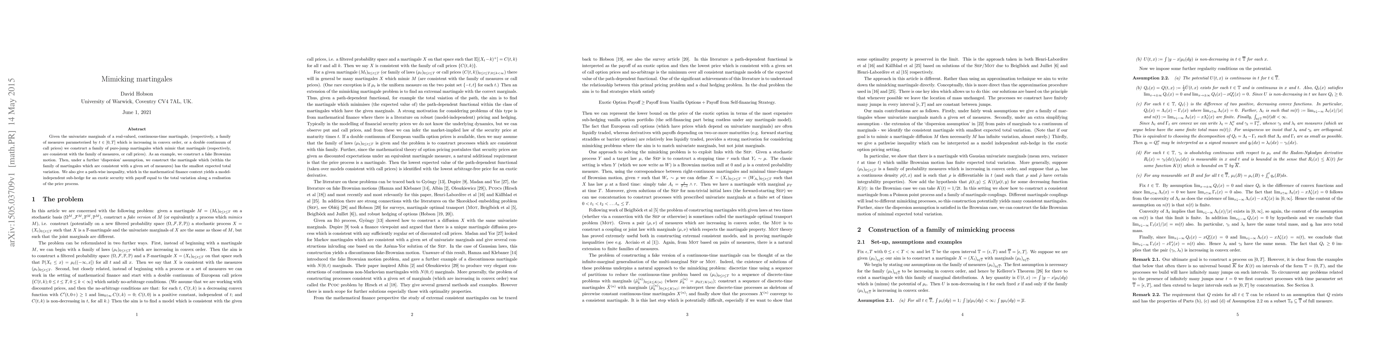 This paper constructs pure-jump martingales that mimic continuous-time martingales, consistent measures, or call prices. It also finds the martingale with the smallest expected total variation under a dispersion assumption and provides a path-wise inequality for model-independent sub-hedging in mathematical finance.
