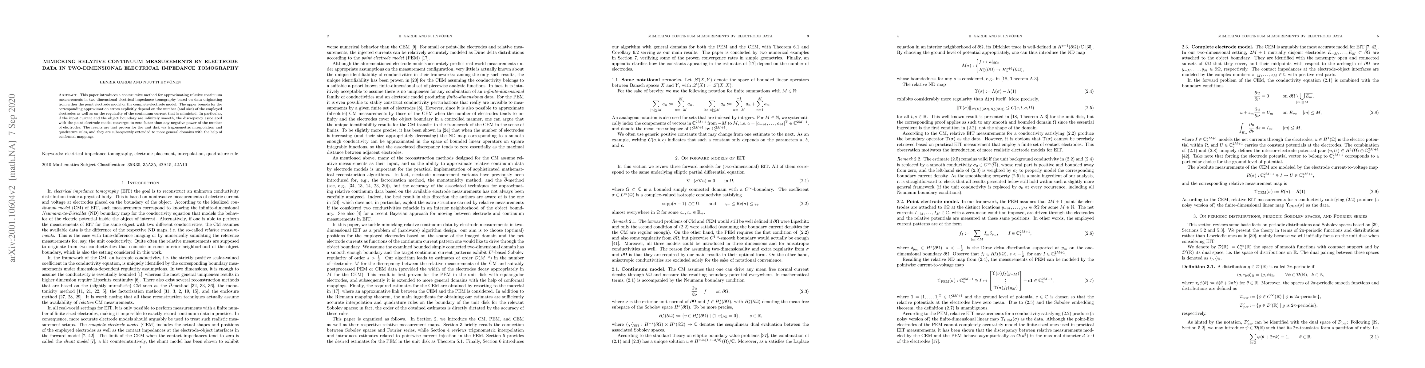 This paper introduces a constructive method for approximating relative continuum measurements in two-dimensional electrical impedance tomography based on data originating from either the point electrode model or the complete electrode model. The upper bounds for the corresponding approximation errors explicitly depend on the number (and size) of the employed electrodes as well as on the regularity of the continuum current that is mimicked. In particular, if the input current and the object boundary are infinitely smooth, the discrepancy associated with the point electrode model converges to zero faster than any negative power of the number of electrodes. The results are first proven for the unit disk via trigonometric interpolation and quadrature rules, and they are subsequently extended to more general domains with the help of conformal mappings.
