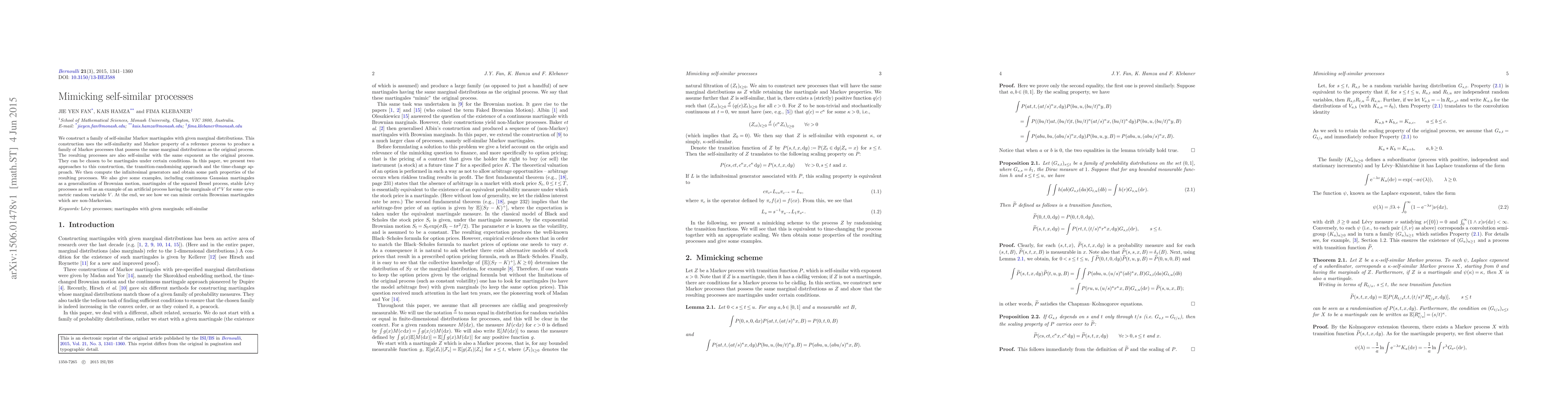 This paper constructs self-similar Markov martingales with prescribed marginal distributions using the self-similarity and Markov properties of a reference process. It presents two construction methods, examines their infinitesimal generators, and provides examples including Gaussian and stable Lévy processes.