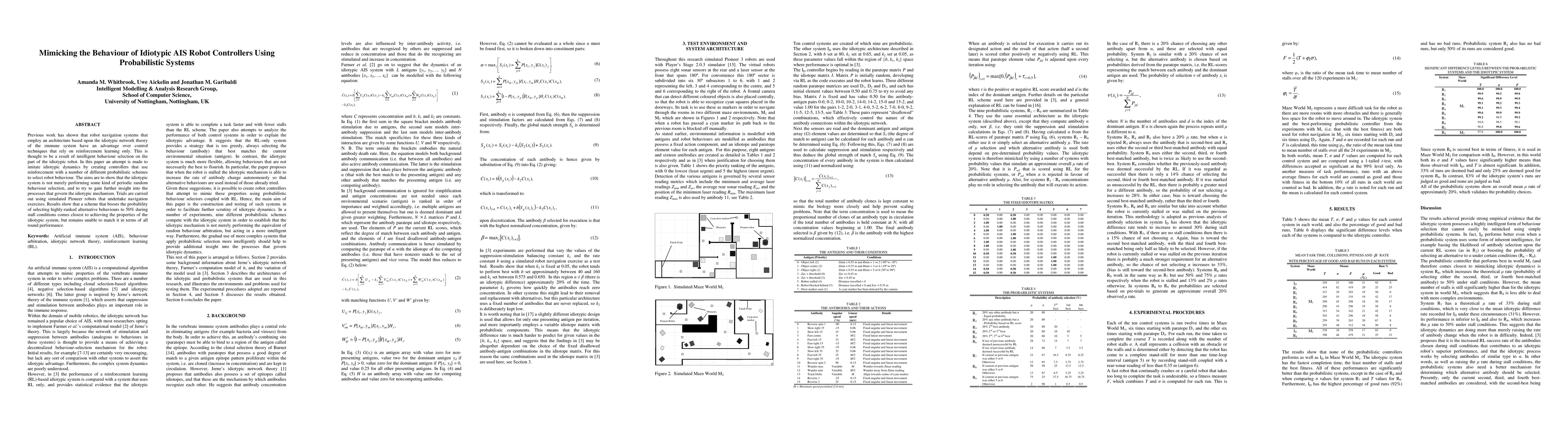 This paper explores mimicking idiotypic network-based robot controllers using probabilistic reinforcement learning. Results show that probabilistic schemes can partially replicate idiotypic behaviour, particularly in selecting high-ranked behaviours during stall conditions, but still fall short of the full idiotypic system's performance.