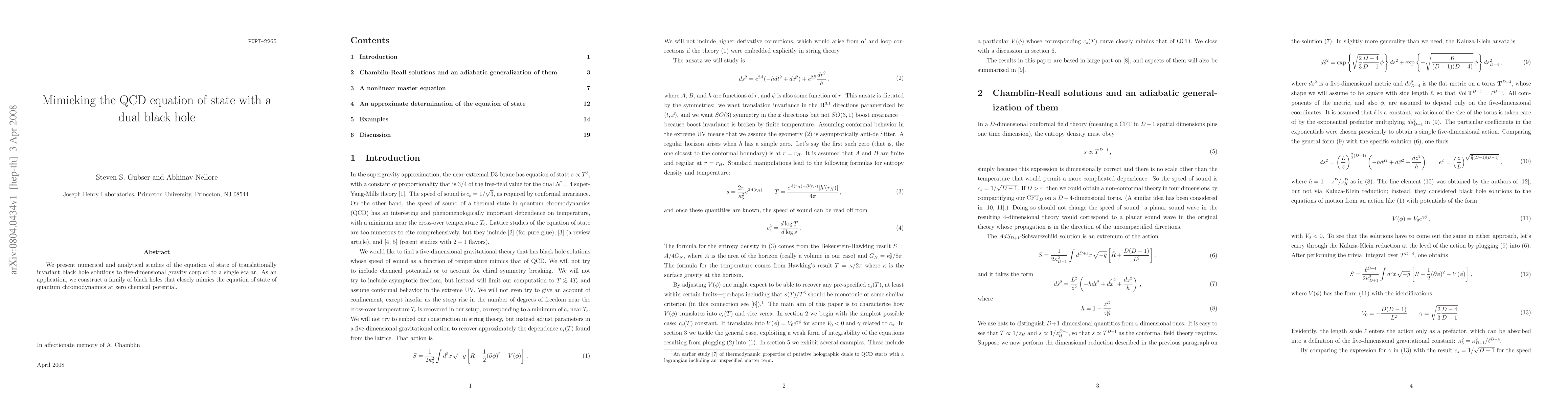 We present numerical and analytical studies of the equation of state of translationally invariant black hole solutions to five-dimensional gravity coupled to a single scalar. As an application, we construct a family of black holes that closely mimics the equation of state of quantum chromodynamics at zero chemical potential.