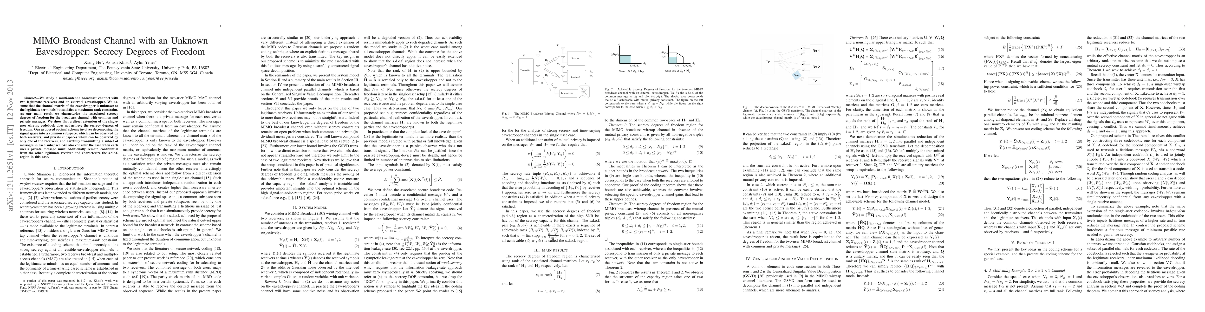 This paper investigates a multi-antenna broadcast channel with two legitimate receivers and an unknown eavesdropper, focusing on the secrecy degrees of freedom. The proposed optimal scheme decomposes the signal space into common and private subspaces, transmitting messages in each to achieve the optimal secrecy degrees of freedom, differing from the single-user wiretap approach.