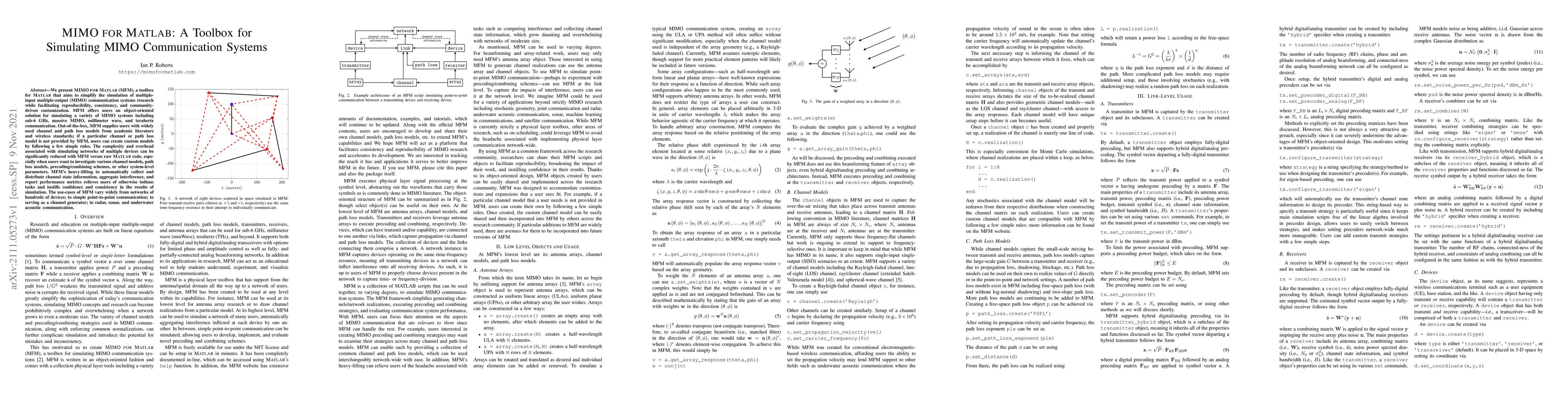 A new MATLAB toolbox called MIMO FOR MATLAB simplifies the simulation of multiple-input multiple-output (MIMO) communication systems, reducing complexity and overhead, while facilitating reproducibility and community customization.