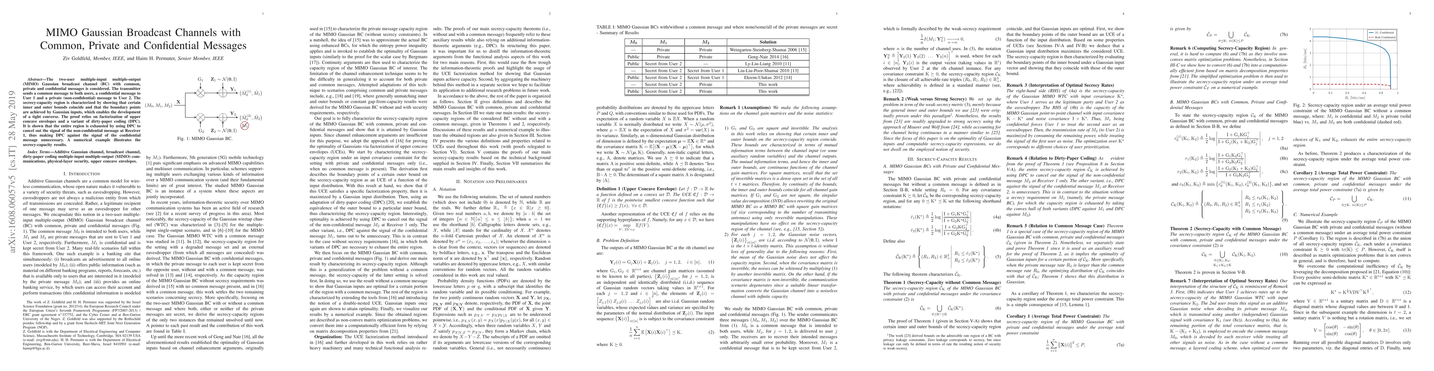 This paper characterizes the secrecy-capacity region for a two-user MIMO Gaussian broadcast channel with common, private, and confidential messages. It demonstrates that the entire region is achieved using a variant of dirty-paper coding to cancel the non-confidential message, thereby simplifying the coding strategy.