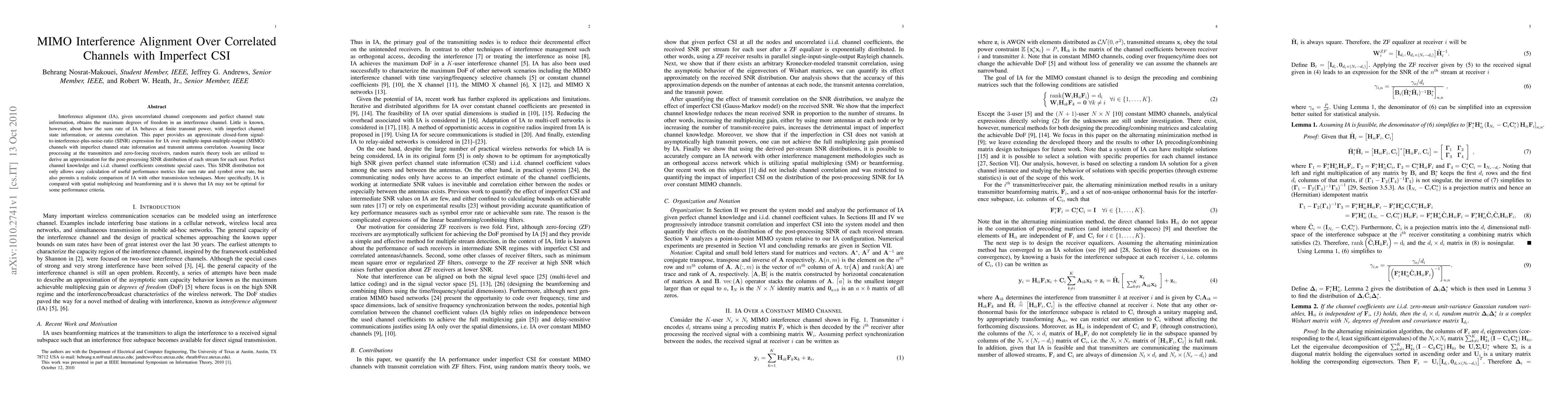 This paper develops an approximate closed-form SINR expression for MIMO interference alignment over correlated channels with imperfect channel state information, using random matrix theory. It shows that IA may not always outperform spatial multiplexing and beamforming under certain conditions.