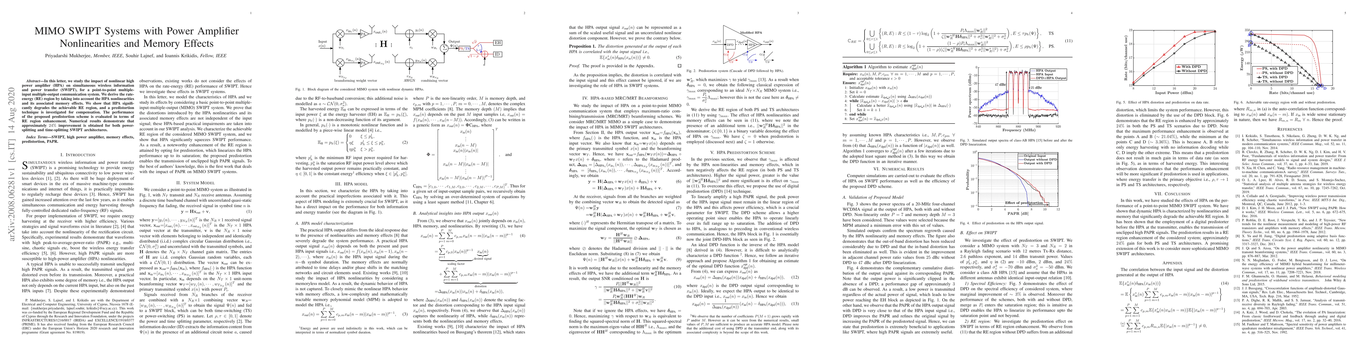 This paper investigates the impact of nonlinear high power amplifiers (HPA) on simultaneous wireless information and power transfer (SWIPT) in MIMO systems, deriving the rate-energy region while considering HPA nonlinearities and memory effects. A predistortion technique is proposed to compensate for HPA degradation, achieving approximately 24% improvement in the rate-energy region for both power-splitting and time-splitting architectures.