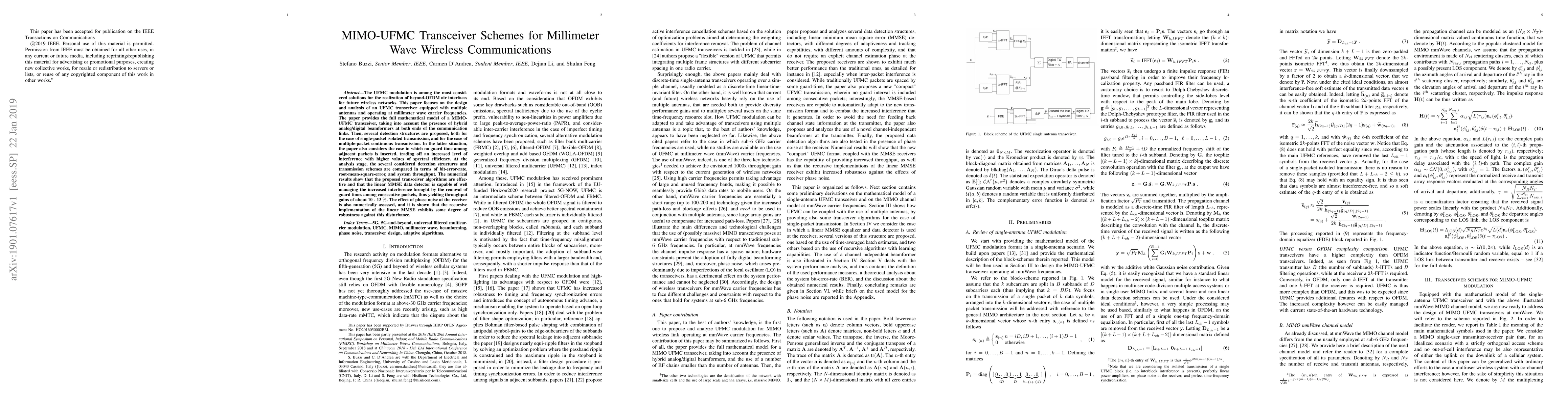This paper designs a MIMO-UFMC transceiver for millimeter wave communications, analyzing various detection structures for single- and multi-packet transmissions. The proposed linear MMSE data detector effectively manages interference, achieving throughput gains of 10-13% and demonstrating robustness against phase noise.