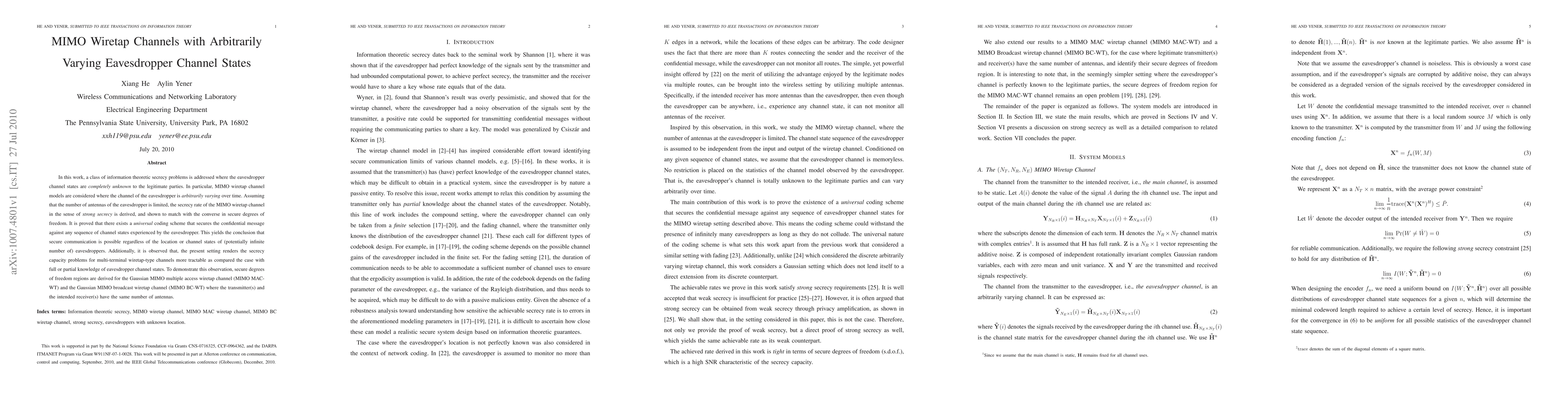 This paper investigates secrecy in MIMO wiretap channels where eavesdroppers have arbitrarily varying channel states unknown to legitimate parties. It derives the secrecy rate for such channels and proves a universal coding scheme that secures communication against any eavesdropper channel sequence, demonstrating secure communication feasibility regardless of eavesdropper locations or states.