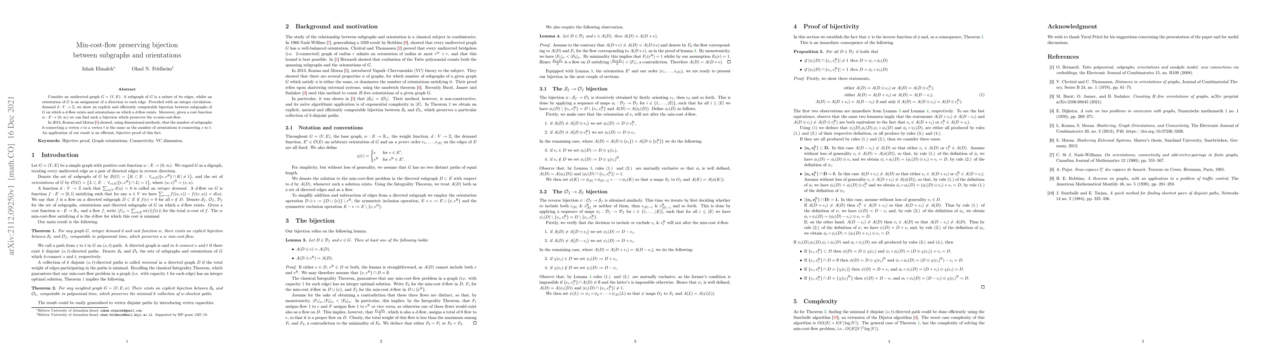 Consider an undirected graph $G=(V,E)$. A subgraph of $G$ is a subset of its edges, whilst an orientation of $G$ is an assignment of a direction to each edge. Provided with an integer circulation-demand $d:V\to \mathbb{Z}$, we show an explicit and efficiently computable bijection between subgraphs of $G$ on which a $d$-flow exists and orientations on which a $d$-flow exists. Moreover, given a cost function $w:E\to (0,\infty)$ we can find such a bijection which preserves the $w$-min-cost-flow. In 2013, Kozma and Moran showed, using dimensional methods, that the number of subgraphs $k$-connecting a vertex $s$ to a vertex $t$ is the same as the number of orientations $k$-connecting $s$ to $t$. An application of our result is an efficient, bijective proof of this fact.