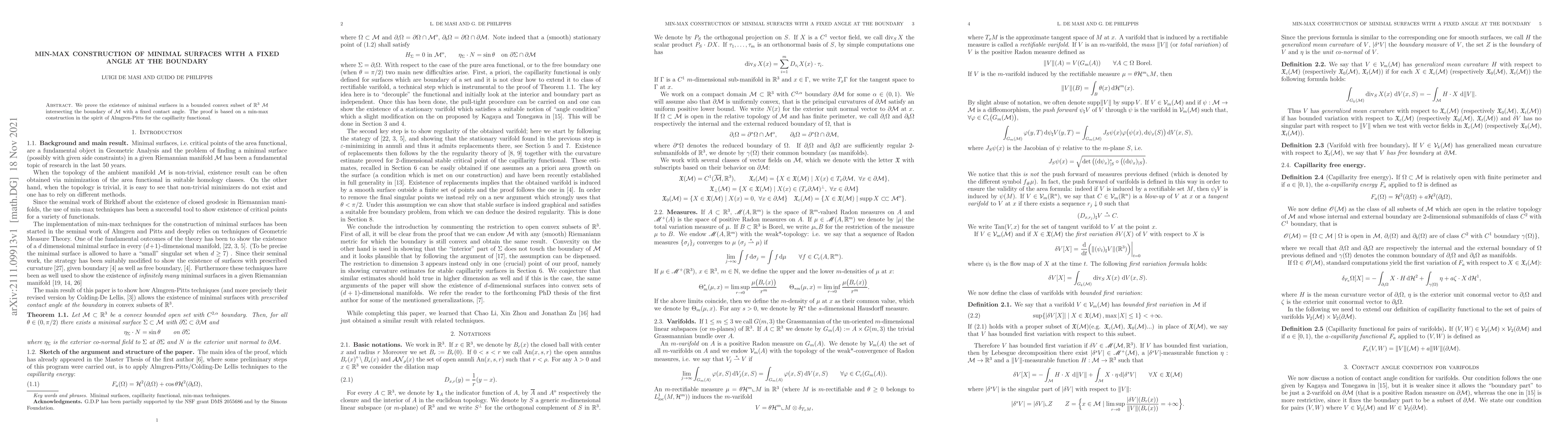 We prove the existence of minimal surfaces in a bounded convex subset of $\mathbb R^3$, $\mathcal M$, intersecting the boundary of $\mathcal M$ with a fixed contact angle. The proof is based on a min-max construction in the spirit of Almgren-Pitts for the capillarity functional.