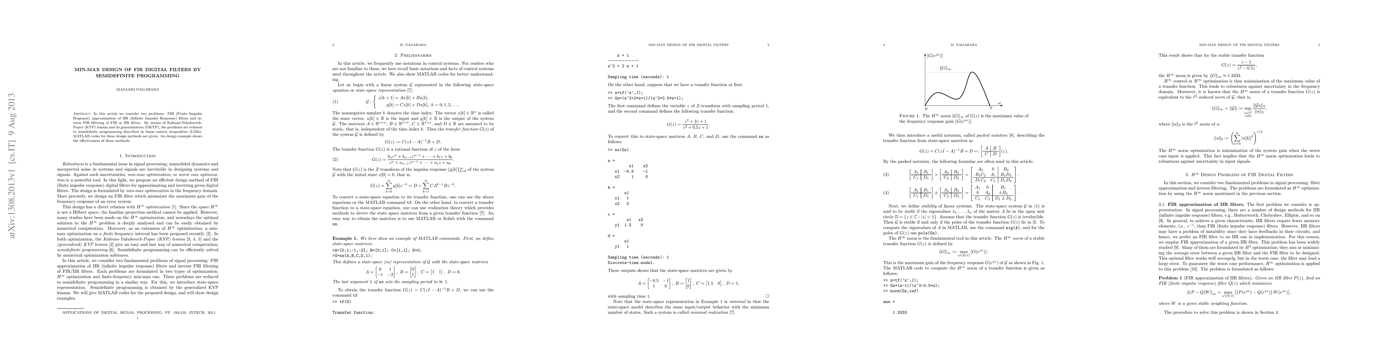 This paper proposes semidefinite programming methods for designing FIR filters to approximate IIR filters and for inverse FIR filtering. It employs the Kalman-Yakubovich-Popov lemma to formulate these problems as linear matrix inequalities, providing MATLAB codes and an example demonstrating the effectiveness of the approach.