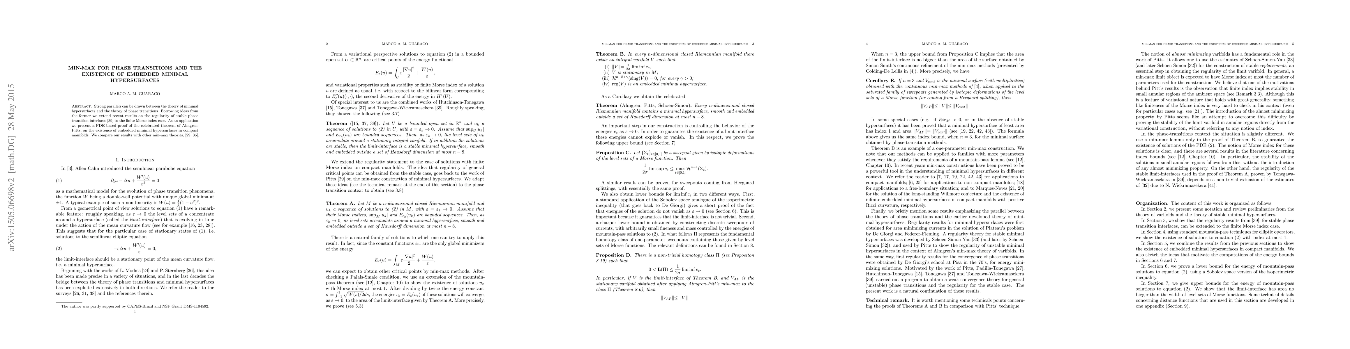 This paper extends results on the regularity of stable phase transition interfaces to the finite Morse index case, applying these ideas to prove the Almgren-Pitts theorem on embedded minimal hypersurfaces in compact manifolds, and compares these findings with other min-max theories.