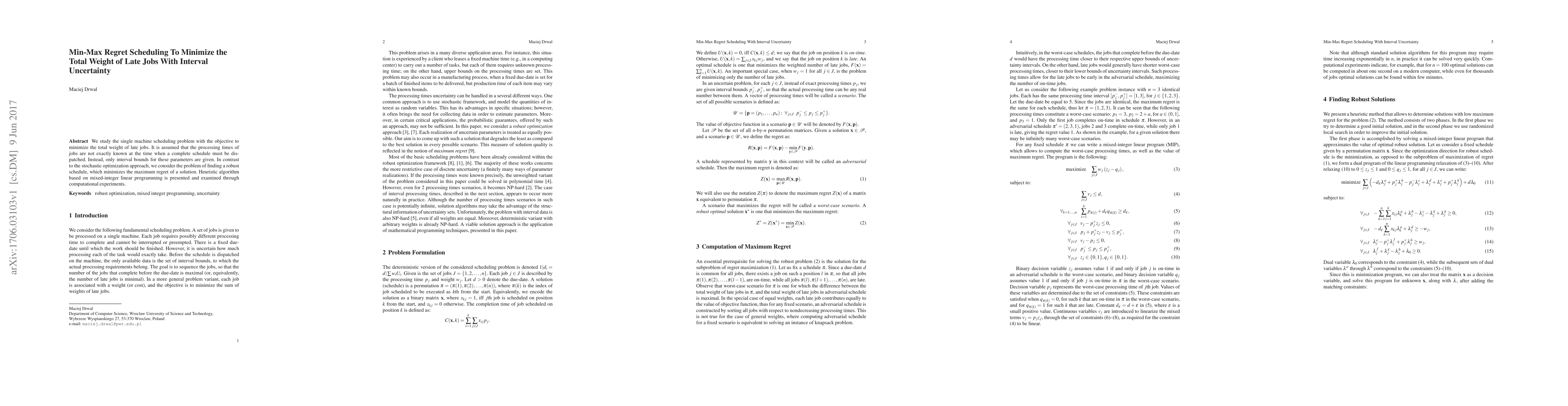 Researchers developed a heuristic algorithm to minimize late job weights in single machine scheduling with interval uncertainty, focusing on maximizing the maximum regret of a solution rather than minimizing expected costs.