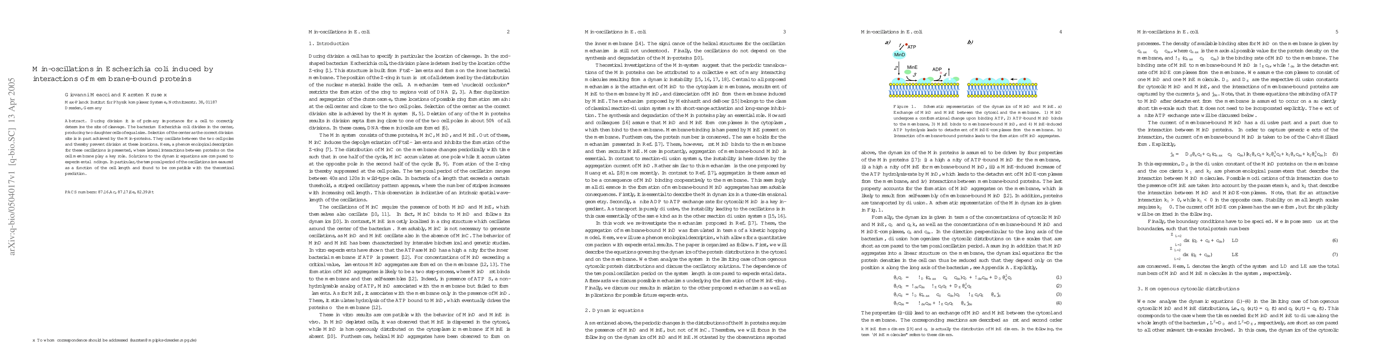 Research on Escherichia coli cell division reveals that membrane-bound proteins oscillate between cell poles to prevent incorrect division sites, with lateral interactions playing a key role.