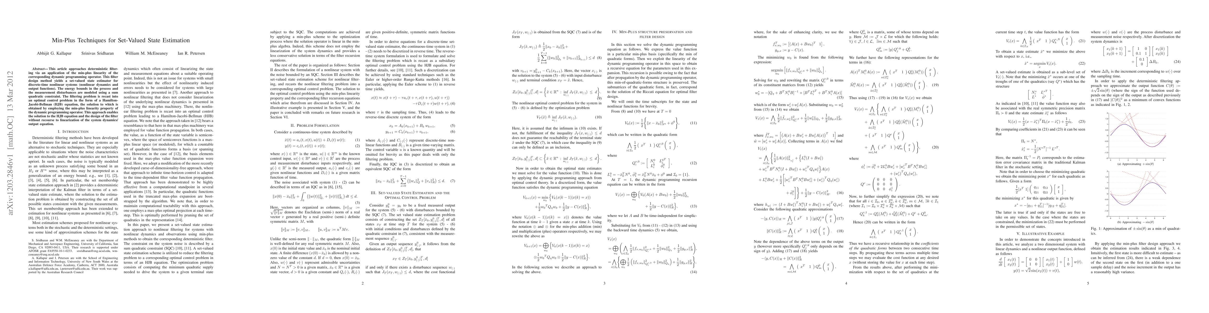 A new method for set-valued state estimation in nonlinear systems uses min-plus linearity to solve an optimal control problem without linearization of the system dynamics or output equation.