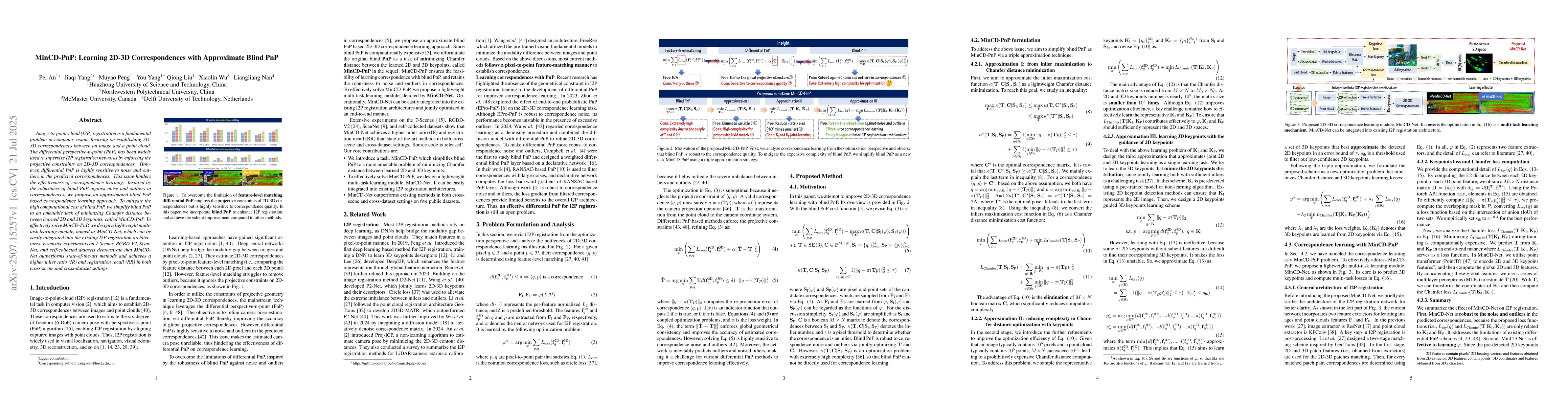 Image-to-point-cloud (I2P) registration is a fundamental problem in computer vision, focusing on establishing 2D-3D correspondences between an image and a point cloud. The differential perspective-n-point (PnP) has been widely used to supervise I2P registration networks by enforcing the projective constraints on 2D-3D correspondences. However, differential PnP is highly sensitive to noise and outliers in the predicted correspondences. This issue hinders the effectiveness of correspondence learning. Inspired by the robustness of blind PnP against noise and outliers in correspondences, we propose an approximated blind PnP based correspondence learning approach. To mitigate the high computational cost of blind PnP, we simplify blind PnP to an amenable task of minimizing Chamfer distance between learned 2D and 3D keypoints, called MinCD-PnP. To effectively solve MinCD-PnP, we design a lightweight multi-task learning module, named as MinCD-Net, which can be easily integrated into the existing I2P registration architectures. Extensive experiments on 7-Scenes, RGBD-V2, ScanNet, and self-collected datasets demonstrate that MinCD-Net outperforms state-of-the-art methods and achieves a higher inlier ratio (IR) and registration recall (RR) in both cross-scene and cross-dataset settings.