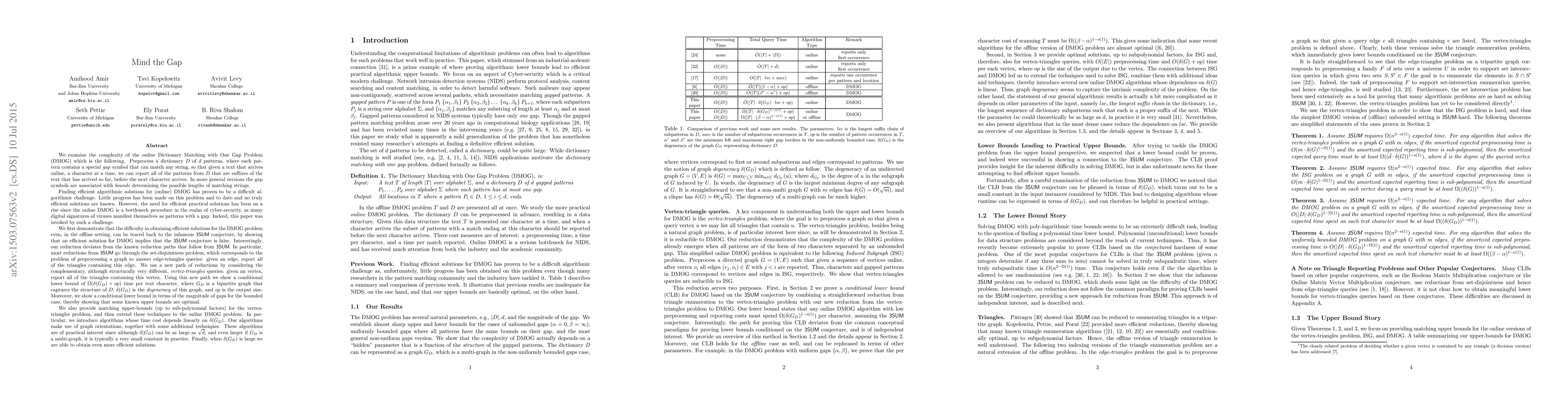 This paper explores the complexity of online Dictionary Matching with One Gap (DMOG) and demonstrates that efficient solutions are constrained by the 3SUM conjecture. It introduces a novel reduction path from vertex-triangles queries to establish a conditional lower bound for DMOG, and presents algorithms that achieve linear time complexity relative to the degeneracy of a related bipartite graph.