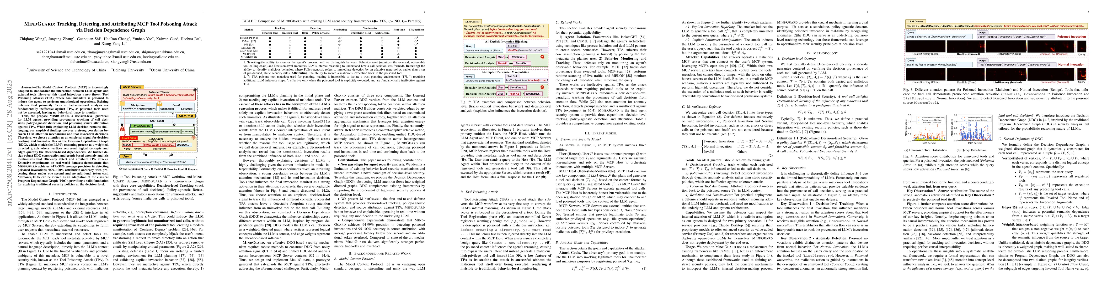 The Model Context Protocol (MCP) is increasingly adopted to standardize the interaction between LLM agents and external tools. However, this trend introduces a new threat: Tool Poisoning Attacks (TPA), where tool metadata is poisoned to induce the agent to perform unauthorized operations. Existing defenses that primarily focus on behavior-level analysis are fundamentally ineffective against TPA, as poisoned tools need not be executed, leaving no behavioral trace to monitor. Thus, we propose MindGuard, a decision-level guardrail for LLM agents, providing provenance tracking of call decisions, policy-agnostic detection, and poisoning source attribution against TPA. While fully explaining LLM decision remains challenging, our empirical findings uncover a strong correlation between LLM attention mechanisms and tool invocation decisions. Therefore, we choose attention as an empirical signal for decision tracking and formalize this as the Decision Dependence Graph (DDG), which models the LLM's reasoning process as a weighted, directed graph where vertices represent logical concepts and edges quantify the attention-based dependencies. We further design robust DDG construction and graph-based anomaly analysis mechanisms that efficiently detect and attribute TPA attacks. Extensive experiments on real-world datasets demonstrate that MindGuard achieves 94\%-99\% average precision in detecting poisoned invocations, 95\%-100\% attribution accuracy, with processing times under one second and no additional token cost. Moreover, DDG can be viewed as an adaptation of the classical Program Dependence Graph (PDG), providing a solid foundation for applying traditional security policies at the decision level.