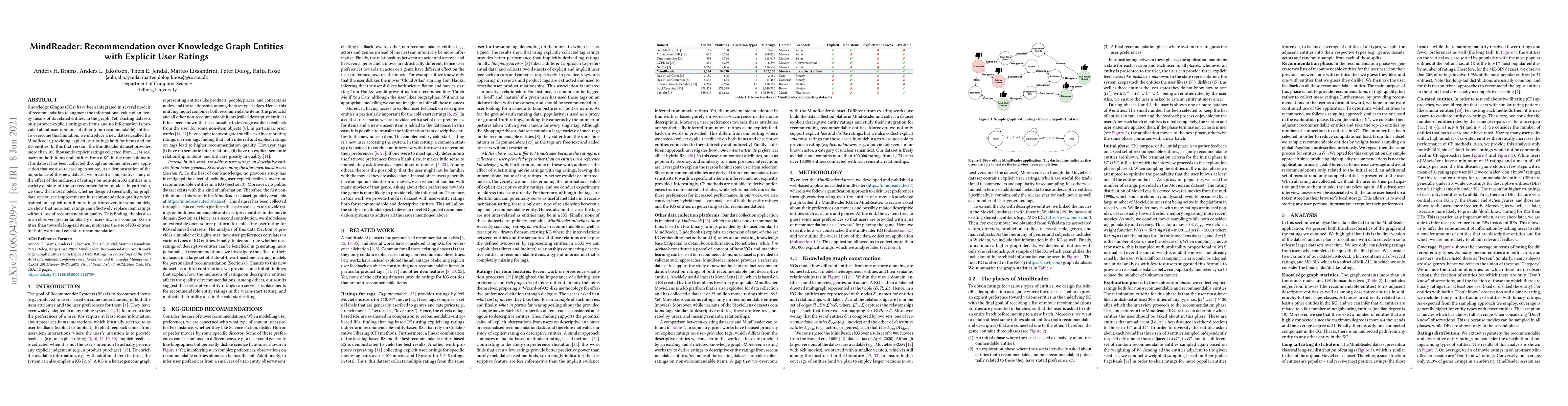 A new dataset called MindReader provides explicit user ratings for both items and knowledge graph entities, improving recommendation quality in various models. Non-item ratings can replace item ratings without loss of recommendation quality.