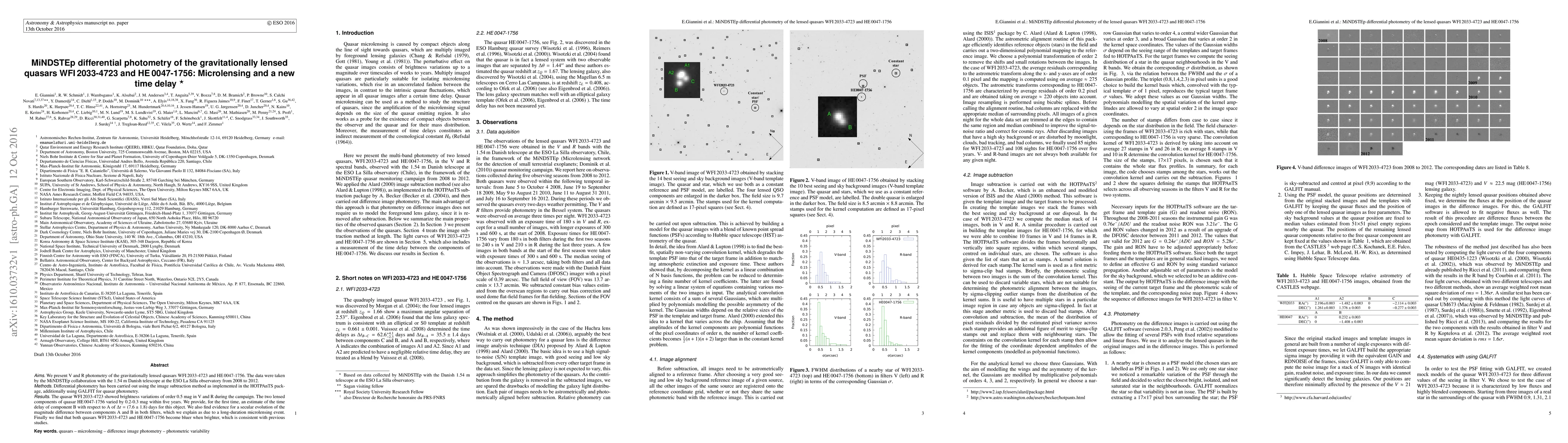 The MiNDSTEp collaboration conducted V and R photometry of gravitationally lensed quasars WFI2033-4723 and HE0047-1756 using the 1.54 m Danish telescope at ESO La Silla observatory from 2008 to 2012. They employed the Alard & Lupton image subtraction method and GALFIT for quasar photometry.