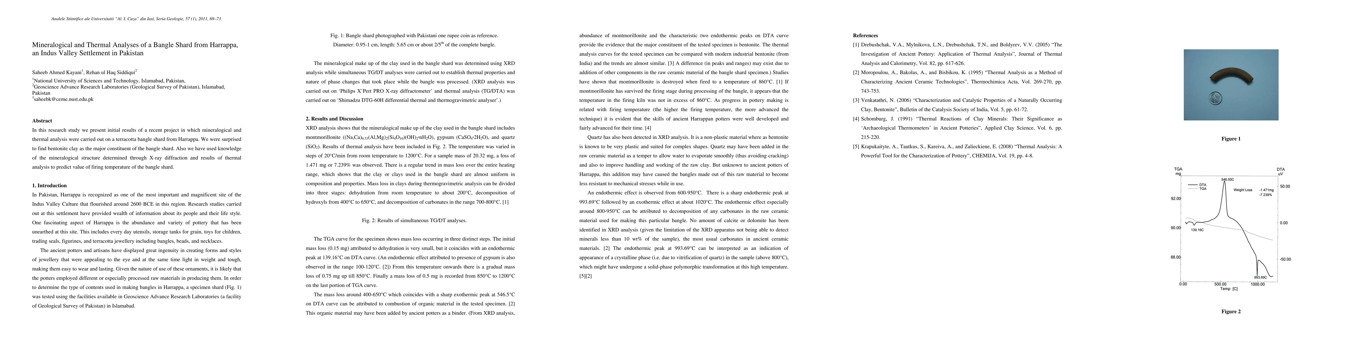 In this research study we present initial results of a recent project in which mineralogical and thermal analysis were carried out on a terracotta bangle shard from Harrappa. We were surprised to find bentonite clay as the major constituent of the bangle shard. Also we have used knowledge of the mineralogical structure determined through X-ray diffraction and results of thermal analysis to predict value of firing temperature of the bangle shard.