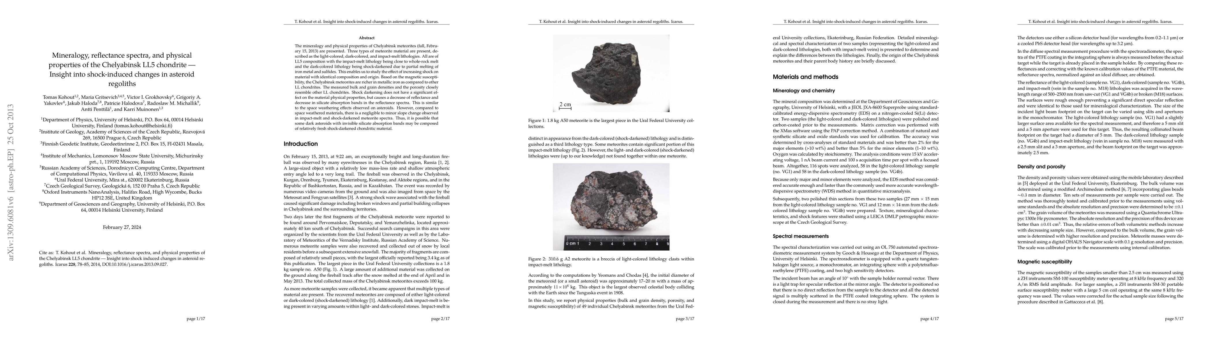 This study examines the mineralogy and physical properties of the Chelyabinsk LL5 chondrite meteorite, revealing three distinct lithologies with varying shock effects. The shock-darkened lithology shows decreased reflectance and altered spectral features, suggesting it could represent dark asteroids with minimal silicate absorption.