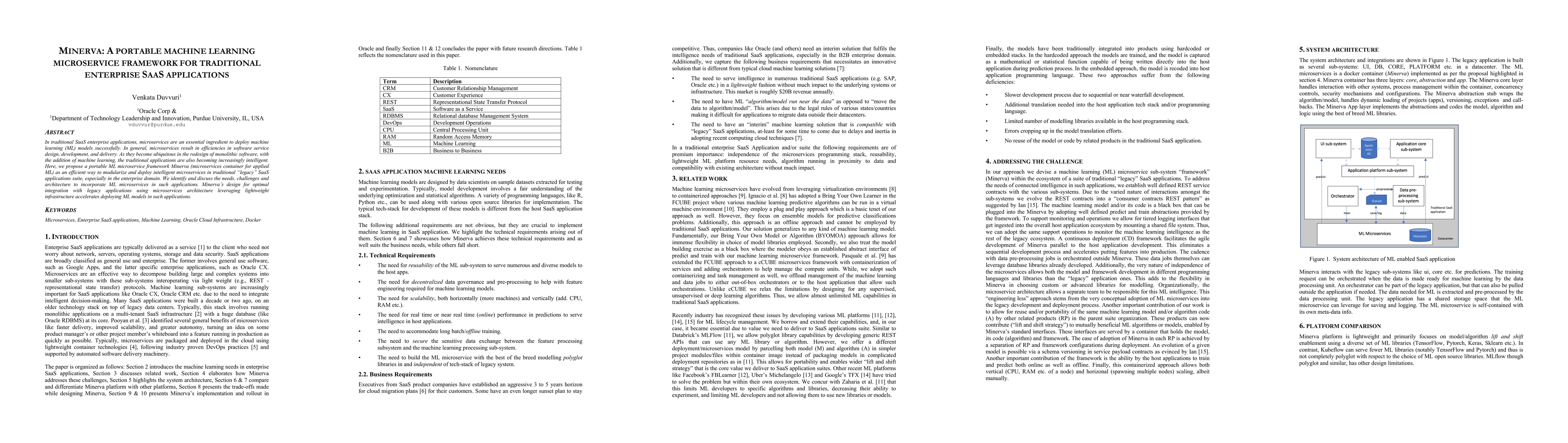 Minerva is a portable machine learning microservice framework designed to facilitate the integration of intelligent microservices into traditional enterprise SaaS applications. It aims to address the challenges of deploying ML models within legacy systems by leveraging microservices architecture and lightweight infrastructure.